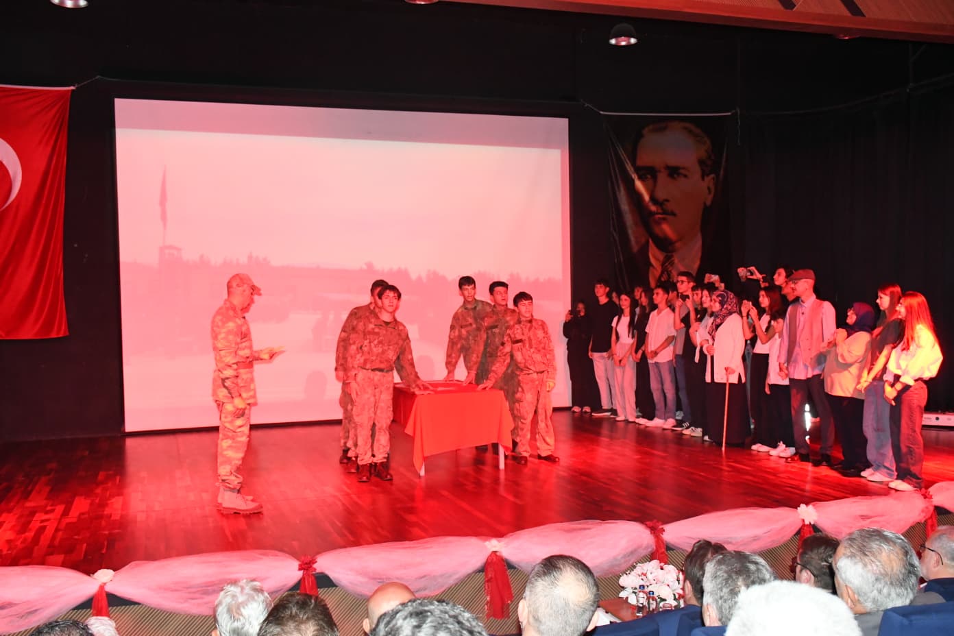 Program, Sabihahanım Ortaokulu Bilişim Teknolojileri Öğretmeni Sadık Pehlivan’ın seslendirdiği “30 Kuş” adlı şiirle devam etti. Ardından öğrencilerin sahnelediği “15 Temmuz Destanı” adlı tiyatral gösteri, izleyicilere duygu dolu anlar yaşattı. 7’den 70’e tek yürek olmanın vurgulandığı gösteride, millet iradesinin önünde hiçbir gücün duramayacağı mesajı verildi.