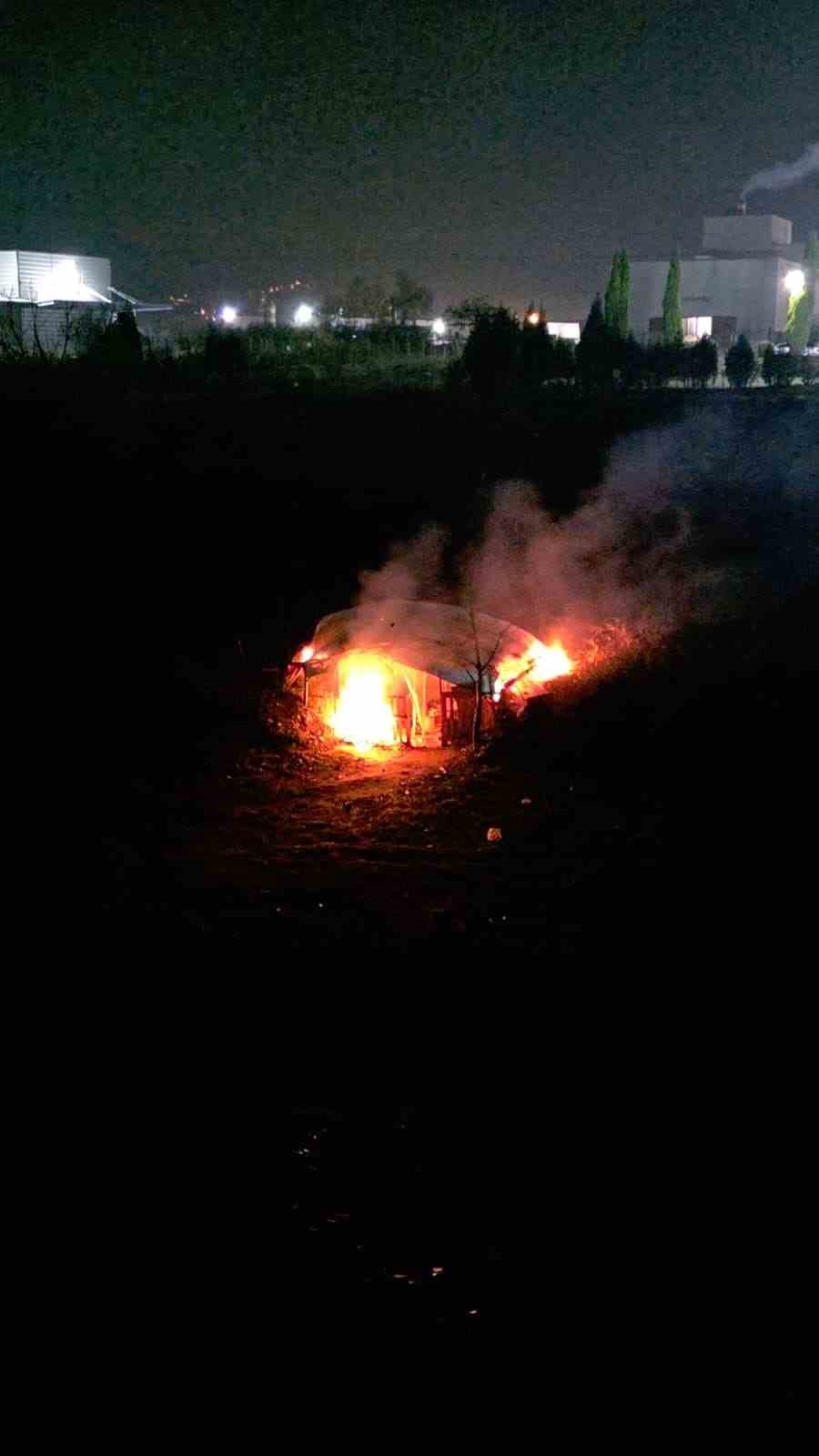 Sakarya’nın Akyazı ilçesinde alkol tüketenlerin adeta meskeni haline gelen baraka alev alev yandı.