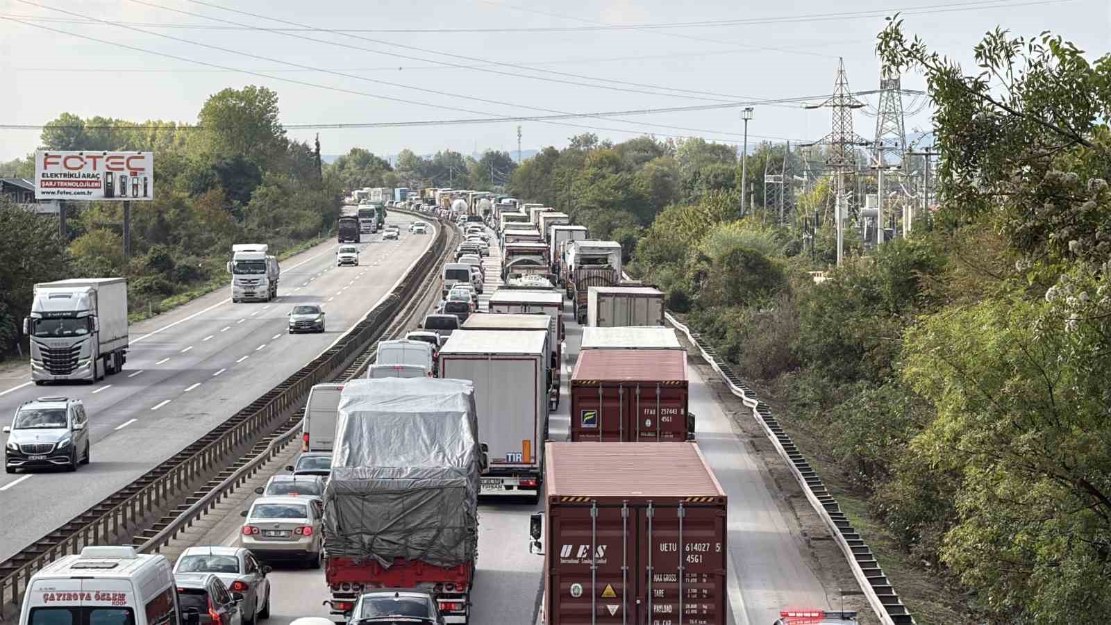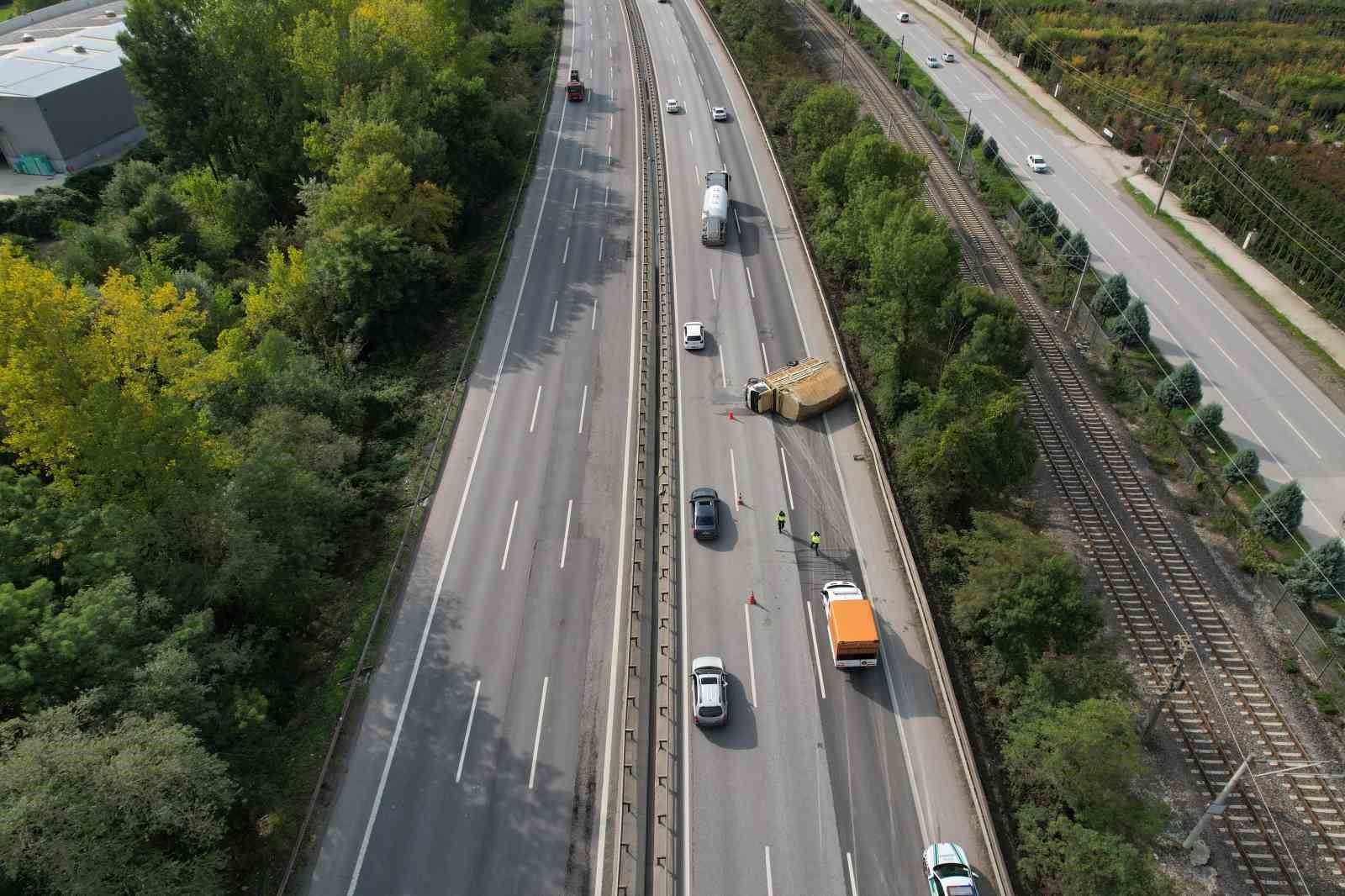 Anadolu Otoyolu’nu kilitleyen kaza: Kontrolden çıkan kamyonet yan yattı