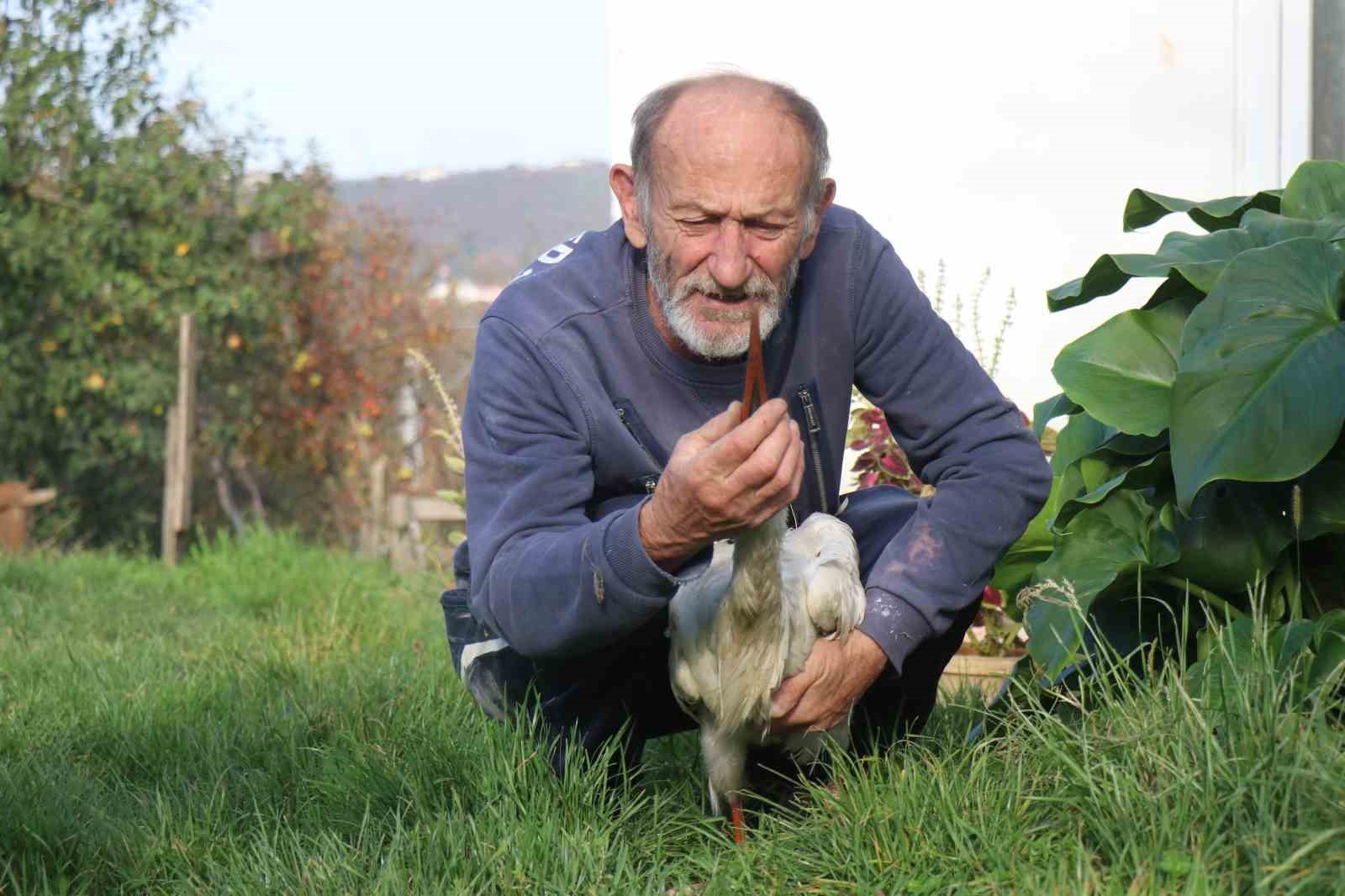 Sakarya’nın Kocaali ilçesinde annesinin yuvadan attığı leylek, bir mahalle sakininin sahip çıkmasıyla hayata tutundu. "Ateş" adı verilen leylek, kendisine bakan vatandaş ve mahalle sakinleri tarafından adeta bir bebek gibi büyütülüyor.