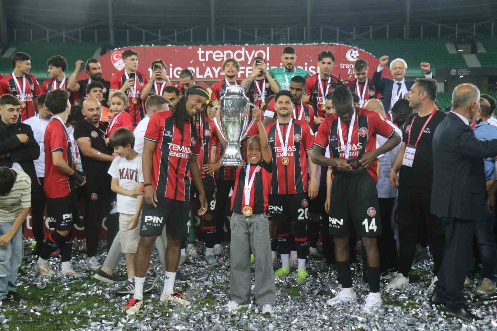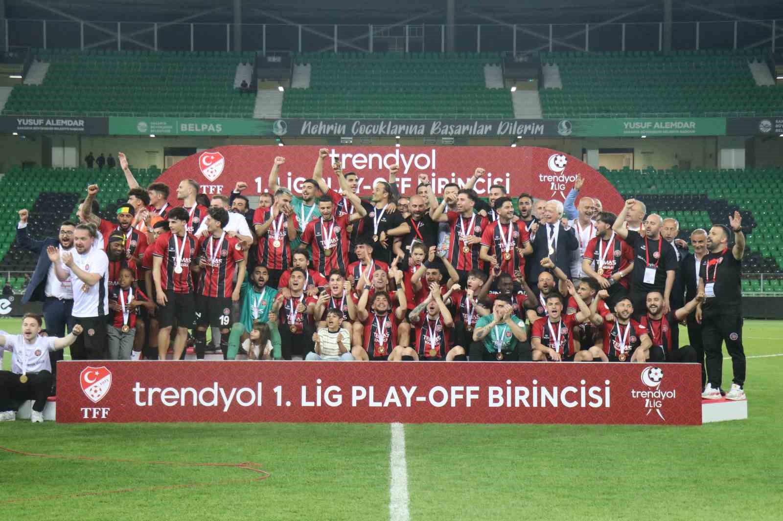 Fatih Karagümrük, Trendyol 1. Lig Play-off final müsabakasında Yeni Atatürk Stadyumu’nda Bandırmaspor ile karşılaştı. 90 dakikası karşılıklı gollerle 1-1 tamamlanan müsabaka uzatmalara giderken, 120 dakika sonucunda maçı 3-1 kazanan Fatih Karagümrük, Trendyol 1. Lig Play-off müsabakalarını şampiyon tamamlayarak Süper Lig’e yükseldi. Maçın ardından düzenlenen kupa töreninde Fatih Karagümrük şampiyonluk kupasını havalandırdı. Maçın ve kutlamaların ardından düzenlenen basın toplantısında konuşan Fatih Karagümrük Teknik Sorumlusu Atılay Canel, "Şu anda çok büyük mutluluk yaşıyorum. Karagümrük tarihinde üçüncü finalini oynadı. 3’te 3 yaptı herhalde tarihe geçecek bir olay. Biz geçen sene haksız bir şekilde Süper Lig’den düşürüldük. Biz hancı, onlar yolcuydu. Biz buradayız yolcular nerede onu bilemiyorum. Oyuna gelince hak ettiğimiz bir galibiyet aldık, futbolcu arkadaşlarımı ve teknik ekibini, sağlık çalışanlarını, kulüp personellerine çok teşekkür ediyorum. Bu bir sene verilen emeğin karşılığı oldu. Süleyman Hurma’ya da buradan teşekkür ediyorum. Bize bu üçüncü kupayı kaldırmayı nasip ettiği için" diye konuştu.