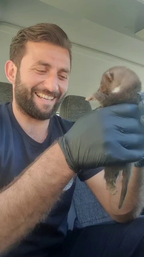 Sakarya’nın Karasu ilçesinde ayı yavrusu bulunduğu ihbarı alan ekipler, bölgeye gittiklerinde canlının sansar yavrusu olduğunu gördü. Sağlık kontrolü yapılmak üzere barınağa götürülen yavruyu elinde tutuna görevlinin, "Neden siz tavuklara saldırıyorsunuz başka bir yiyecek yok mu" diyerek gülümsemesi yüzlerde tebessüm oluşturdu.