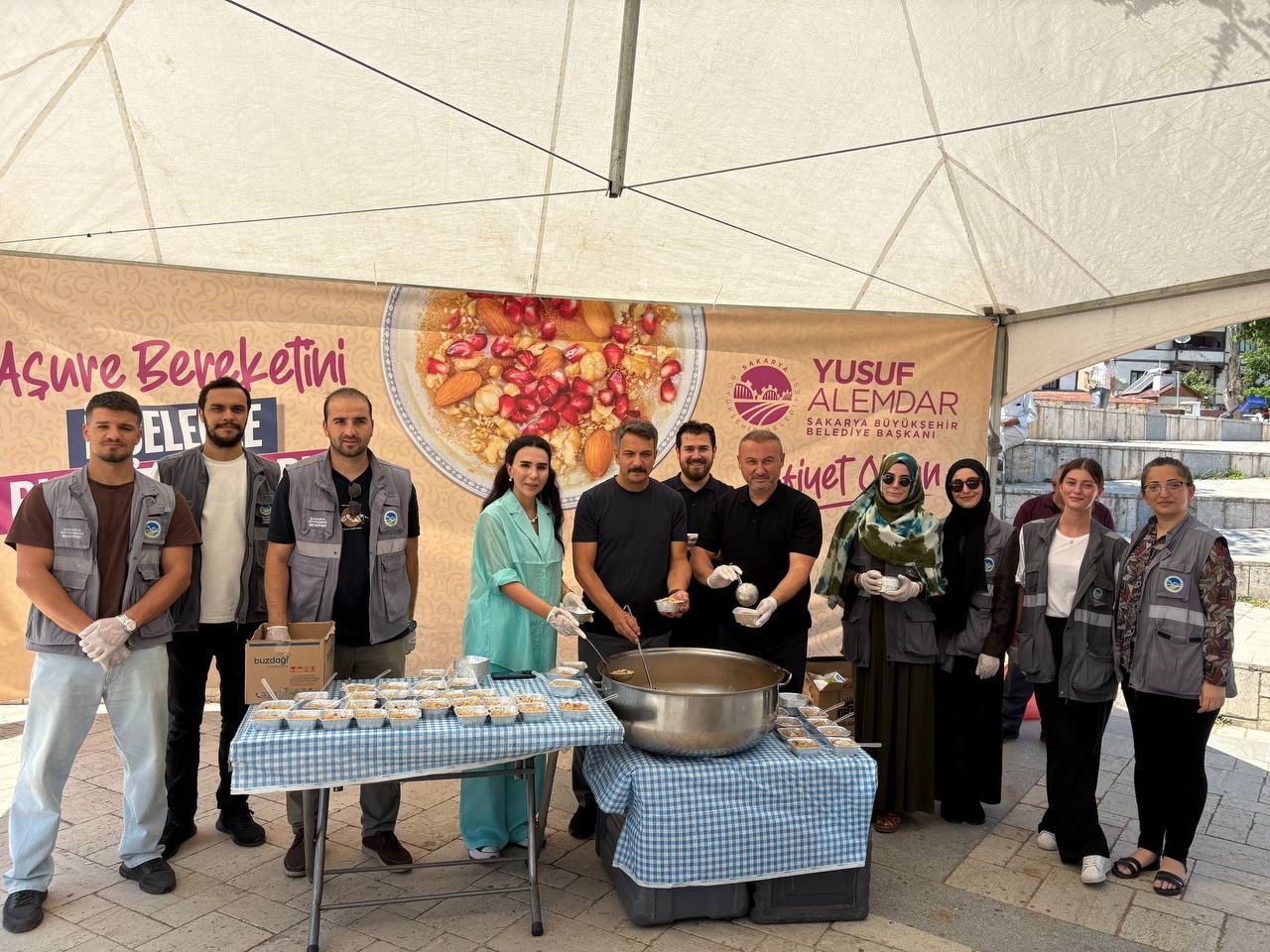 Sakarya Büyükşehir Belediyesi tarafından Muharrem Ayı dolayısıyla gerçekleştirilen aşure ikramı, 16 ilçede vatandaşlara ikram edildi. Büyükşehir Belediyesi bünyesinde faaliyet gösteren aşevinde özenle hazırlanan aşureler, Adapazarı AKM Meydanı ve 15 ilçede cami önlerinde kurulan stantlardan vatandaşlara ikram edildi. Birlik, beraberlik ve paylaşma duygularının öne çıktığı etkinliklerde 40 bin vatandaşa aşure ikram edildi. Muharrem Ayı’nın manevi atmosferini yaşamak ve yaşatmak amacıyla gerçekleştirilen etkinliklere ilgi yoğun olurken, binlerce kişi aşurenin tadına baktı hem diller hem de gönüller lezzet buldu.