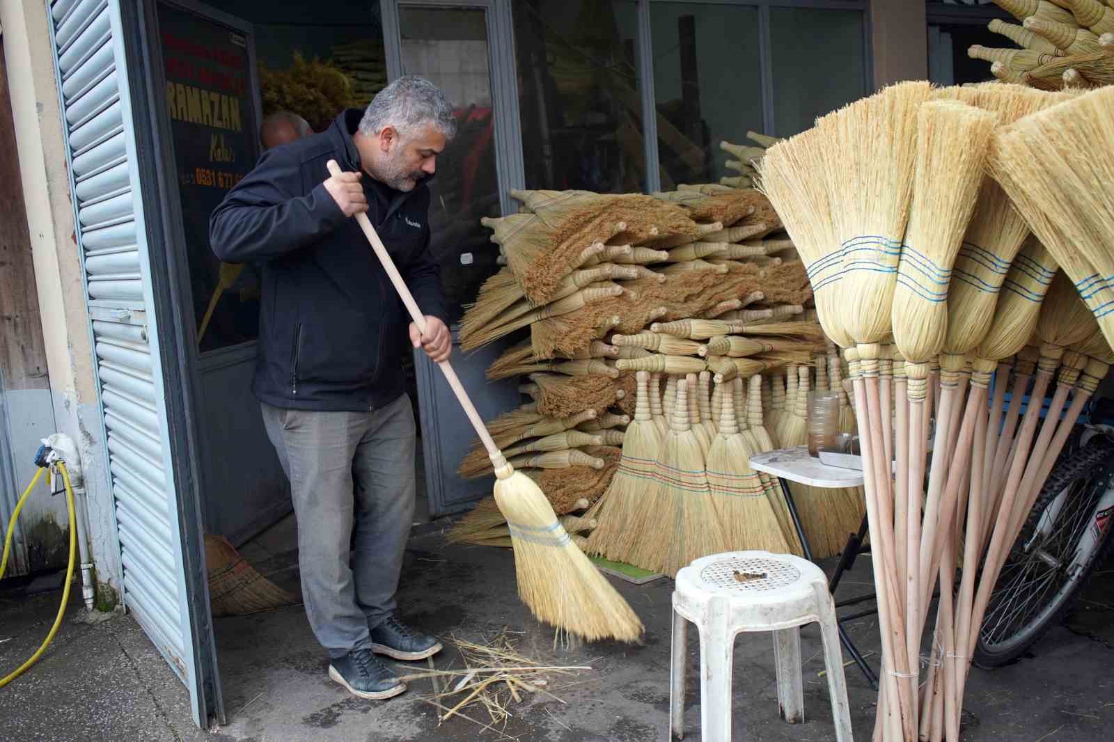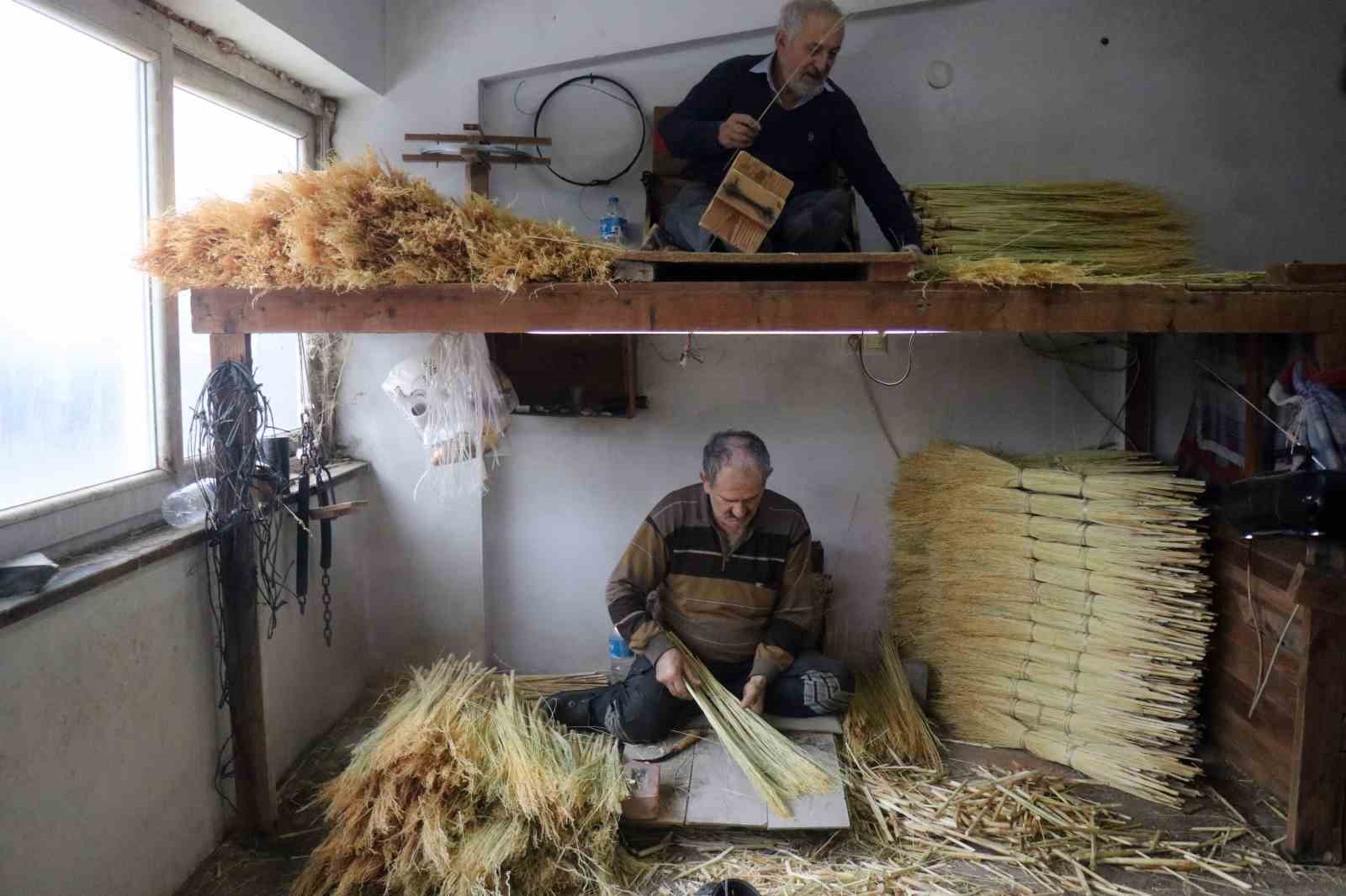 46 yıldır ustalık yaptığını belirten Selahattin Burucuoğlu, "Bizim yaptığımız iş süpürgenin imalatı. Ot olarak geliyor, işlendikten sonra bizlere gelir. Dört aşamadan geçer ve süpürge haline gelir. Vatandaşlar bunu bahçesinde, balkonunu yıkarken kullanıyor. Eskiden alışık olan insanlar evinde bulunduruyor. Hanımlar, halıları dövüp arkasında bu süpürgelerle süpürürlerdi şimdi o durum kalmadı. Robotlar, elektrikli süpürgelerle süpürüyorlar, yıkama zamanı gelince de halı yıkamacılara veriyorlar" dedi.