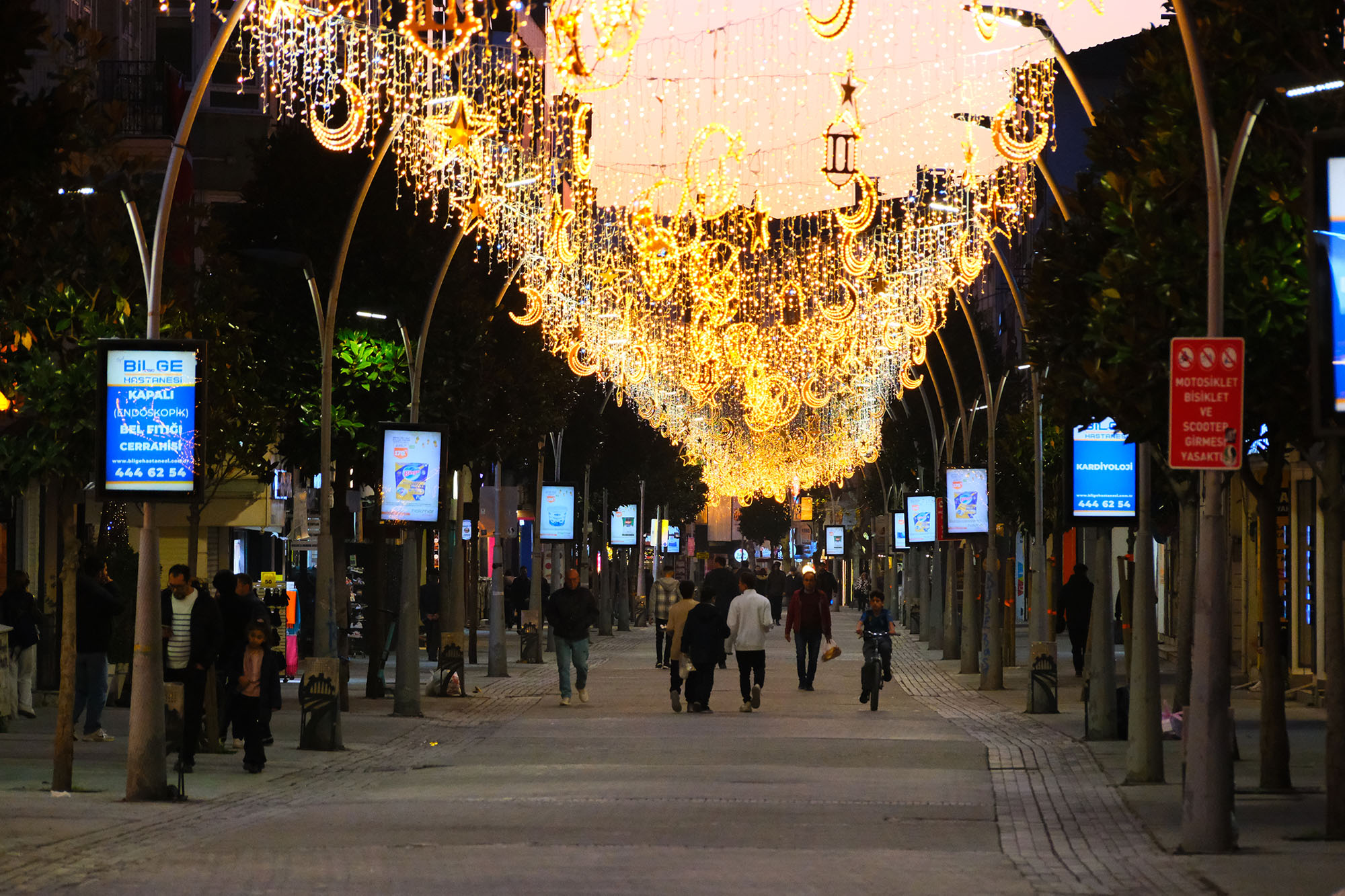 , Ramazan ayının manevi atmosferini şehrin kalbine taşıdı. Şehrin en işlek noktalarından biri olan Çark Caddesi, bu yıl daha önceki konseptlerden farklı olarak özel tasarım, bitişik ve yüksek ışık oranına sahip ledlerle donatıldı.