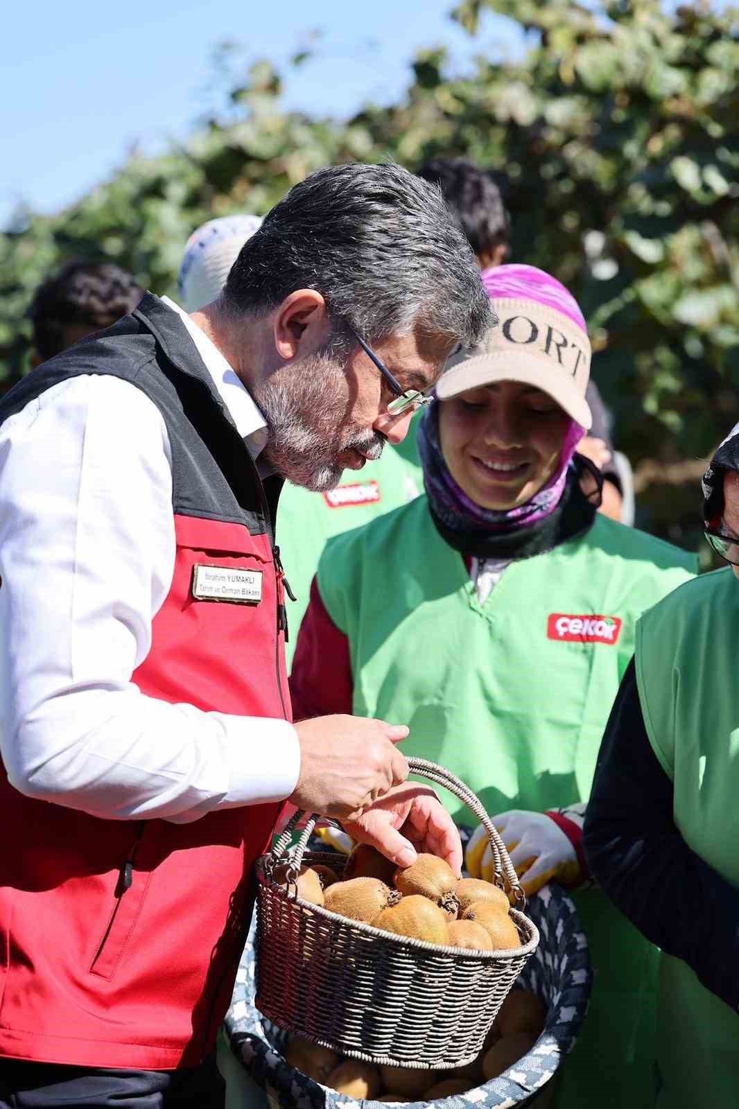 Tarımsal üretimin dışsal etkilere maruz kalabilen bir sektör olduğunu dile getiren Bakan Yumaklı, "Hem yeni üretim desenlerini oluşturmak hem alternatif ürünleri oluşturmak, katma değerli ürünlerin üretilmesi için gayret sarf etmek son derece önem arz ediyor. Kivi de bunlardan bir tanesi. Bu bölgenin özellikle üretim desenini de değiştirmiş durumda. Türkiye’de 2025 yılında kivi rekolte beklentimiz yaklaşık 90 bin ton. Bunun 7 bin 500 tonunu Sakarya üretiyor. Yaklaşık olarak bu 7 bin 500 tonun da 7 bin tonu ihraç edilecek. Tabii bütün Türkiye’den ama biraz önce arkadaşlarla konuştuğumuzda bunun yüzde 65’inin Sakarya’dan, hatta bu bahçeden ihraç edildiğine dair görüştük" diye konuştu.