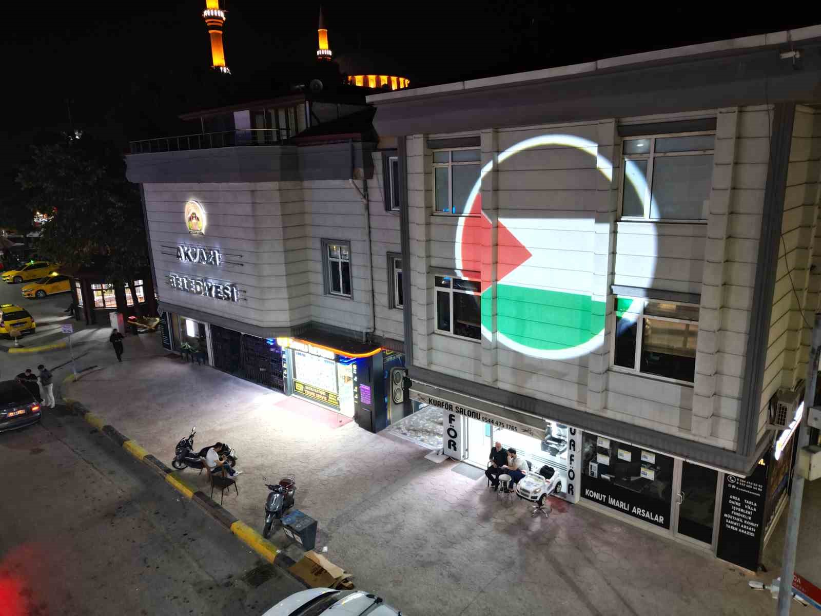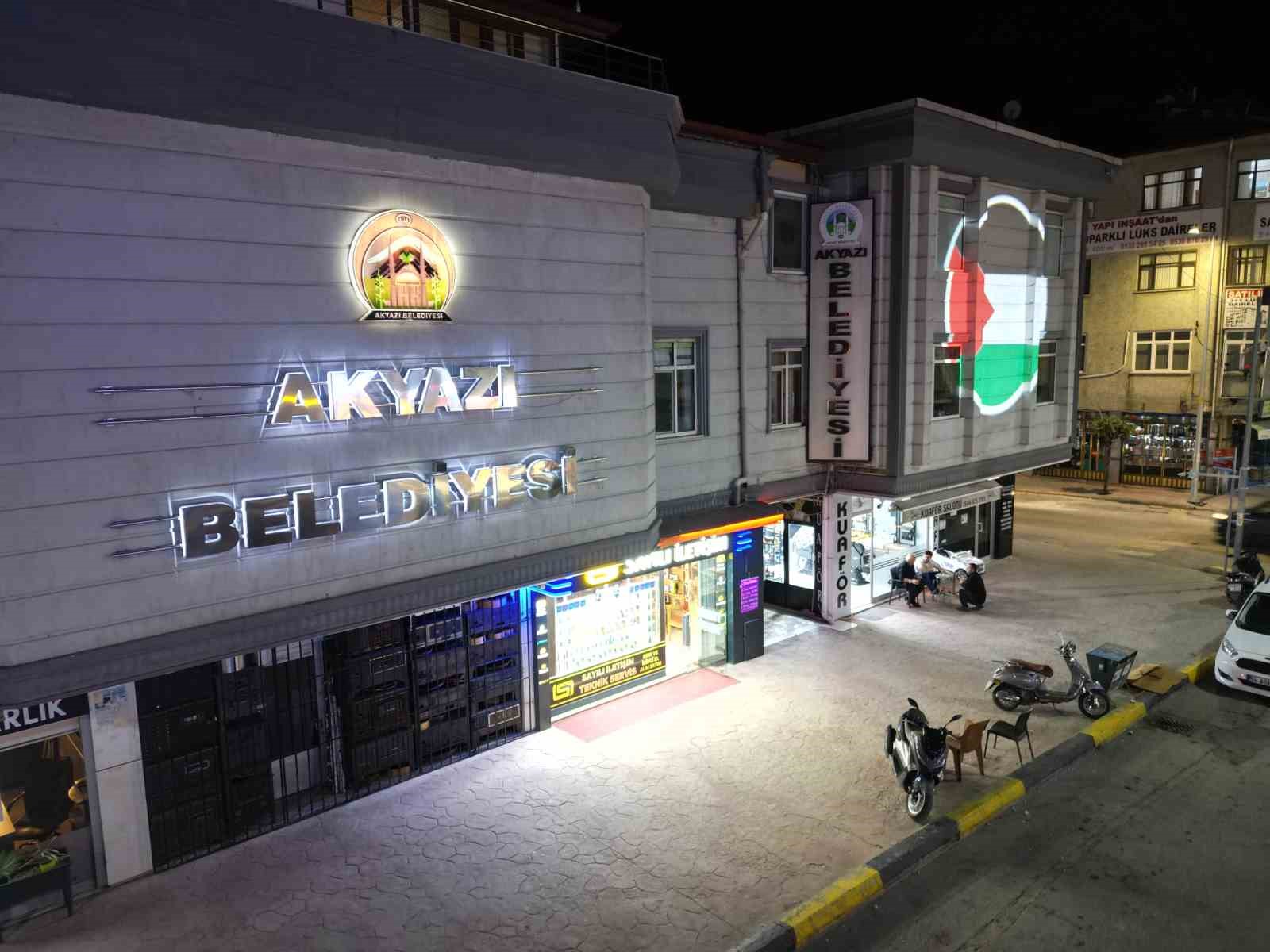 Akyazı Belediyesi, Filistin halkına destek olmak ve yaşanan zulme dikkat çekmek gayesiyle belediye binasının cephesine Filistin bayrağı yansıttı, belediyeye ait hizmet araçlarına da Filistin bayrakları astı.