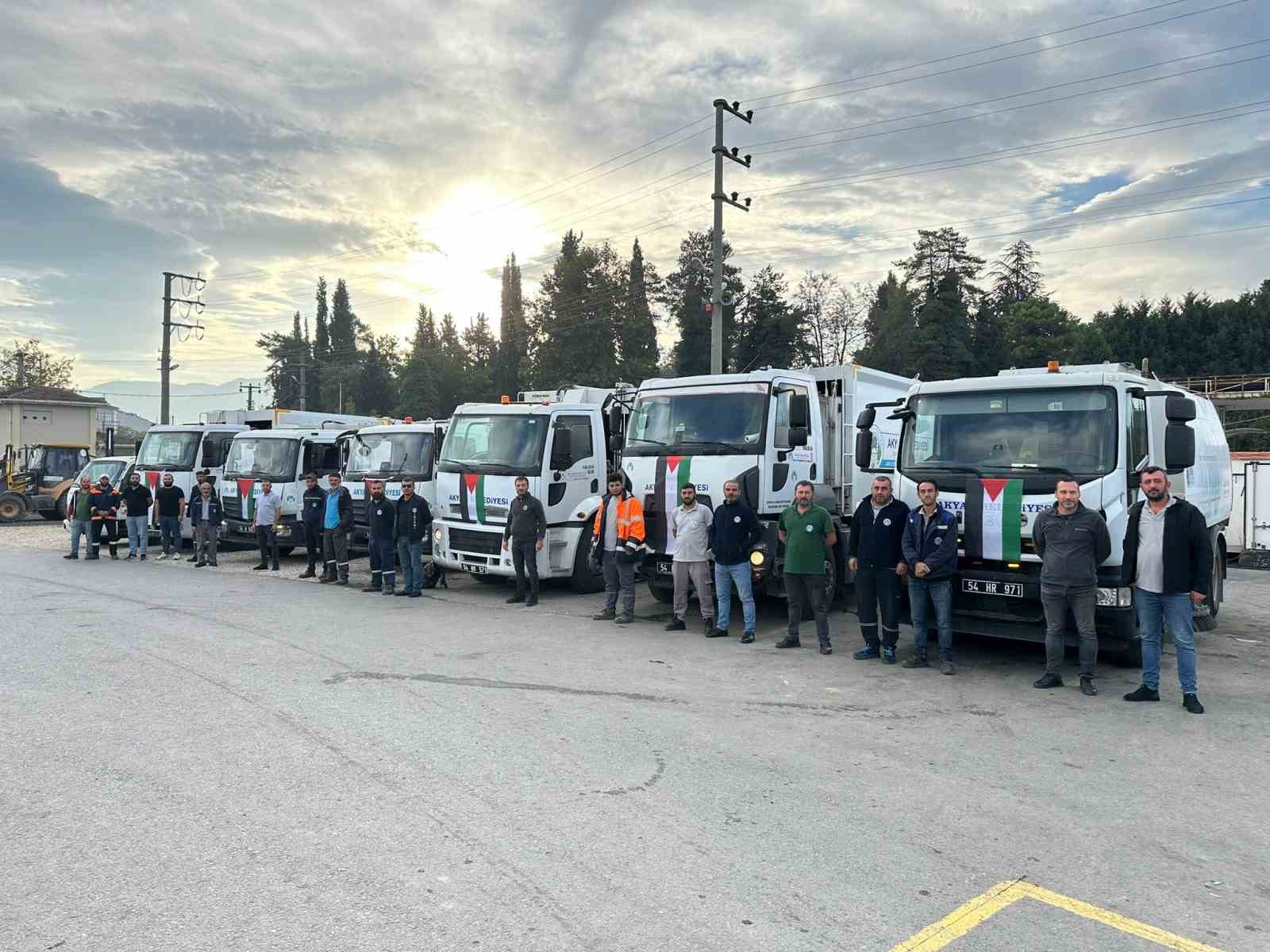 Filistin için birlik mesajı: Belediye ve araçları bayraklarla donatıldı