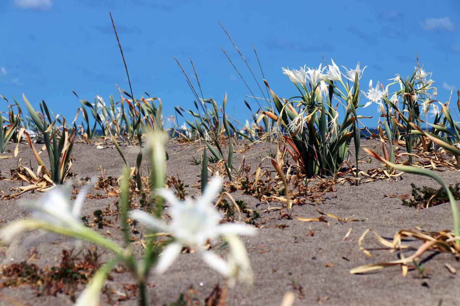 Sakarya’nın Kocaali ilçesi, nesli tükenme tehlikesi altında olan kum zambaklarına ev sahipliği yapıyor. Beyaz çiçekleriyle sahile adeta tablo gibi bir görüntü katan bu endemik bitkiyi koparmanın cezası ise 380 bin TL’ye kadar çıkıyor.