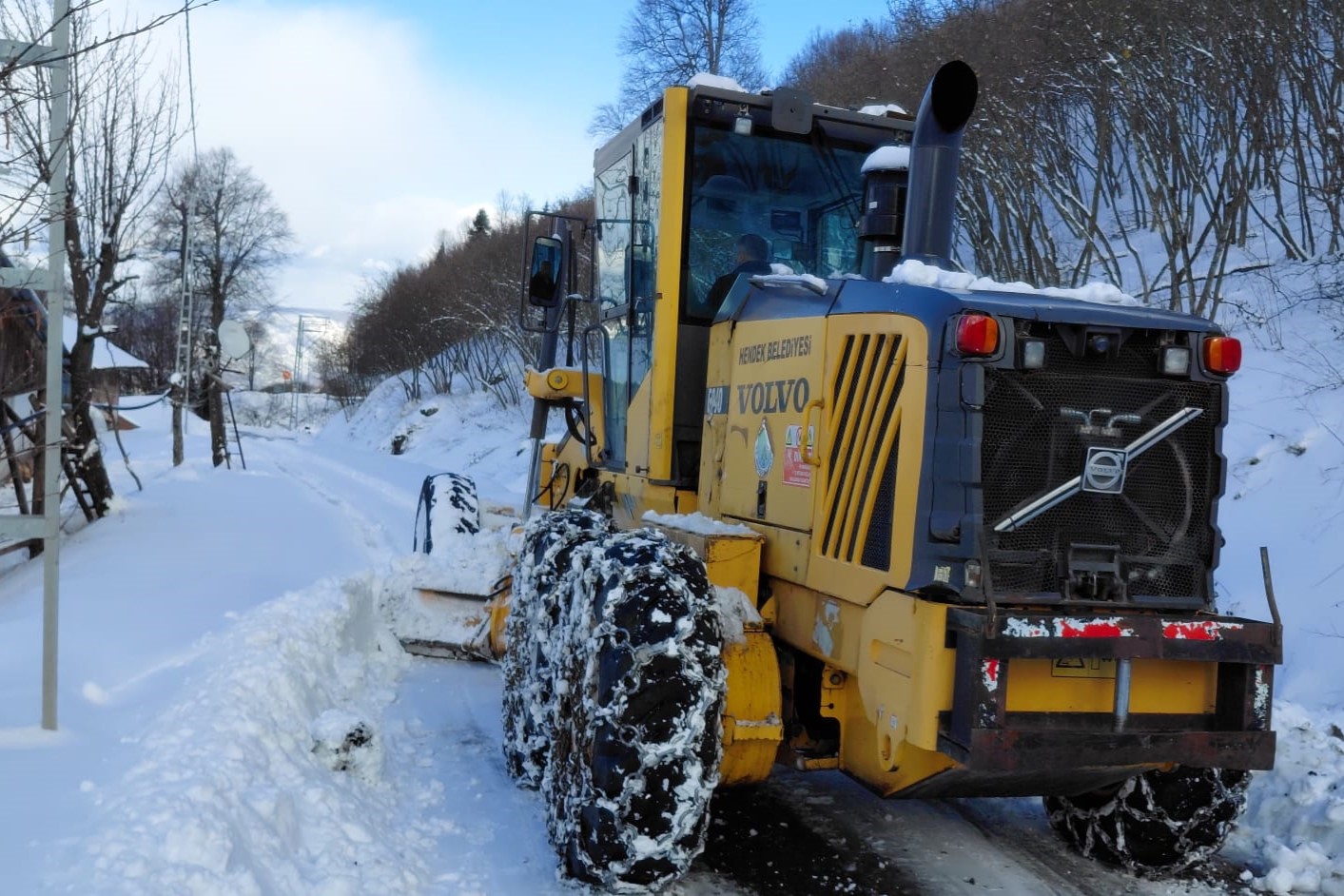 Belediye yetkilileri, kar yağışının seyrine göre ilçe genelinde karla mücadele çalışmalarının aralıksız süreceğini bildirdi.