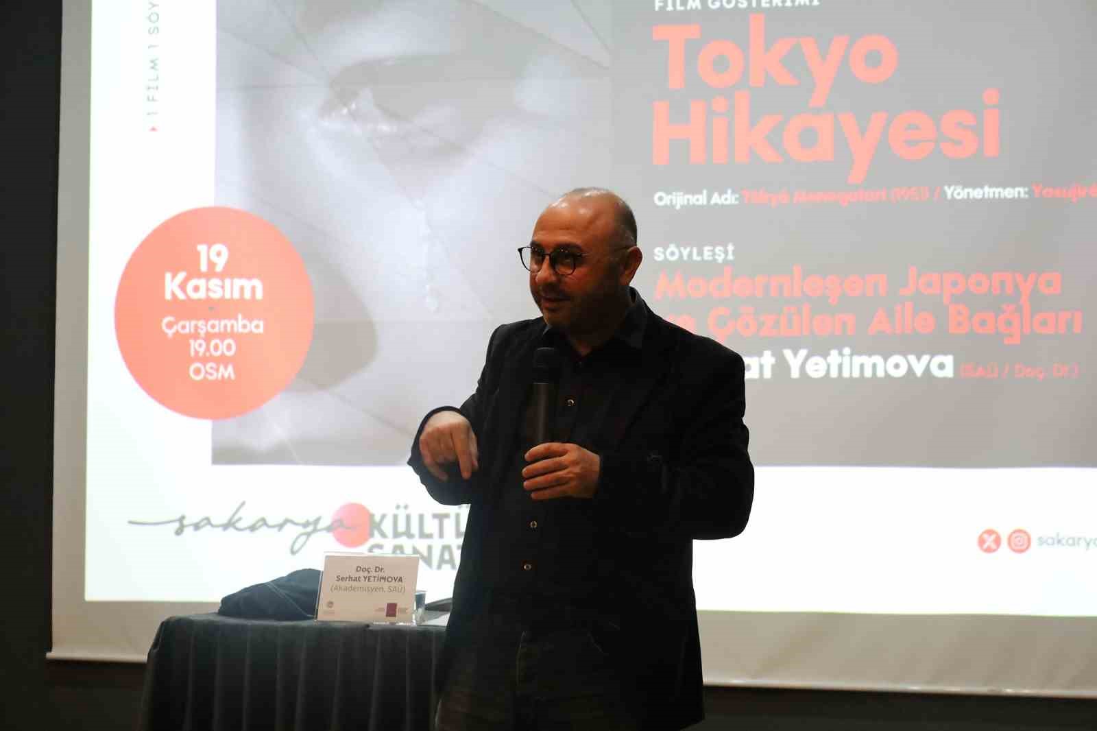 Sakarya Büyükşehir Belediyesi Kasım kültür sanat programı çerçevesinde, Yasujiro Ozu’nun şaheserlerinden Tokyo Hikâyesi filminin gösterimi Ofis Sanat Merkezi’nde izleyiciyle buluştu. Gösterimin ardından Sakarya Üniversitesi Öğretim Üyesi Doç. Dr. Serhat Yetimova, "Modernleşen Japonya ve Çözülen Aile Bağları" başlıklı bir söyleşi gerçekleştirdi. Yetimova, konuşmasında bir filmin etkisinin perdede gördüğümüz hikayeyle sınırlı olmadığını vurgulayarak, "Asıl film, perdedeki hikaye bittiğinde başlar. Çünkü başlangıç noktası bizim algımızdır; duygularımızın o hikâyeyle birlikte çeşitlenmesi çok daha önemlidir. Film size bir şey anlatır ama mesele sizin ne anladığınız, hangi anlamları çıkardığınızdır. Biz bunu konuşmaya başladığımız anda ‘asıl film şimdi başlıyor’ derim" dedi.