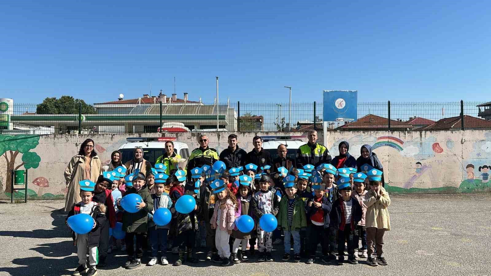 Akyazı İlçe Emniyet Müdürlüğü ekipleri, Polis Haftası etkinlikleri çerçevesinde Akyazı Konuralp Anaokulu öğrencileri ile bir araya geldi. Trafik kuralları hakkında bilgiler veren polislere miniklerin ilgisi yoğun oldu.
