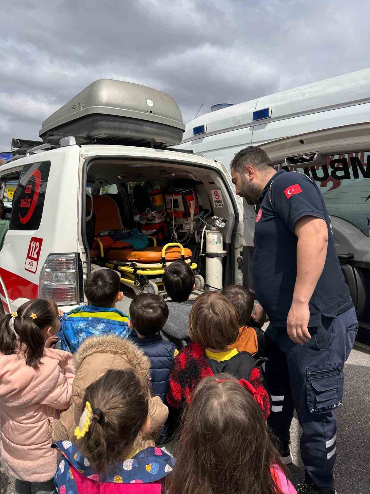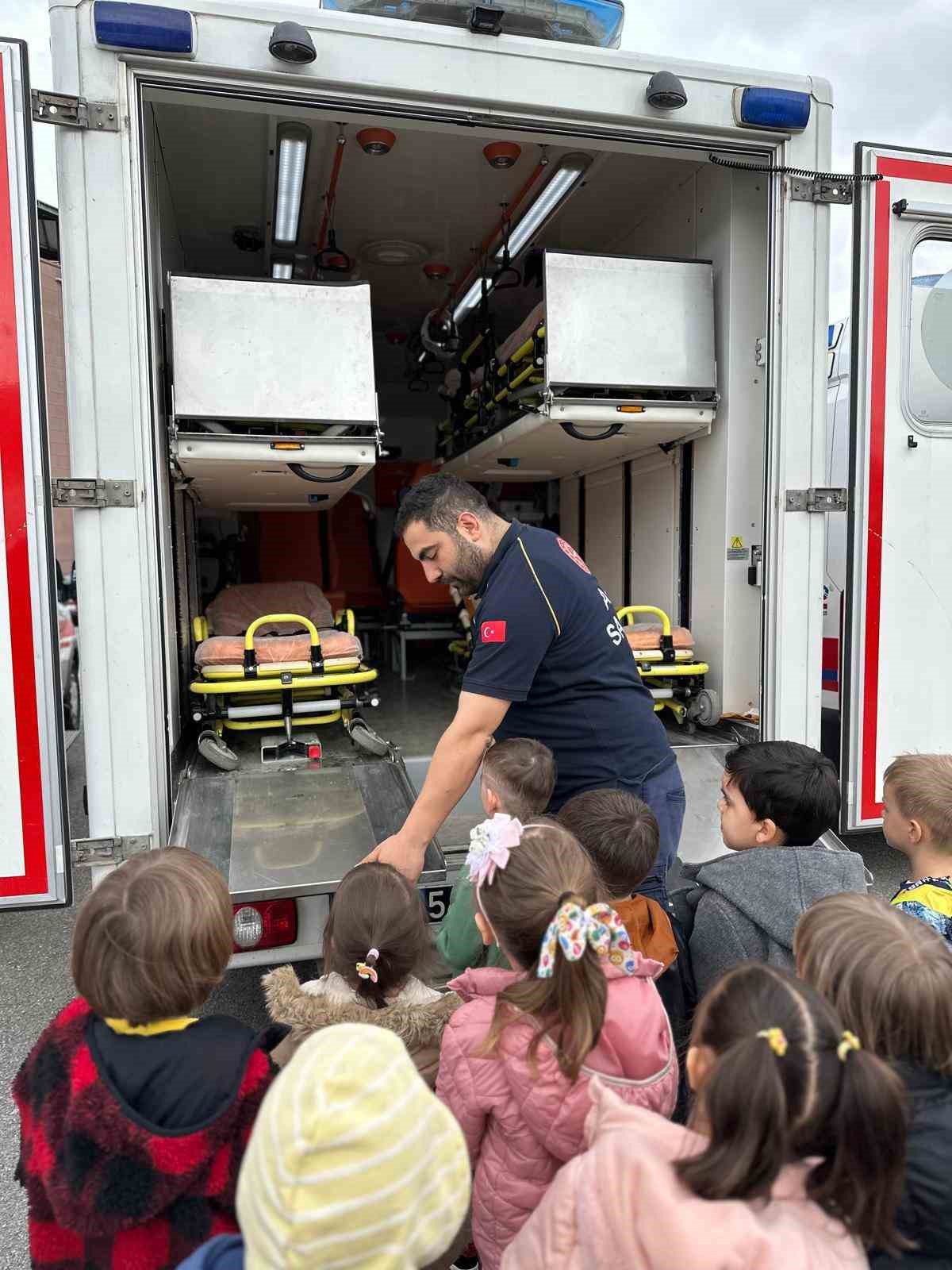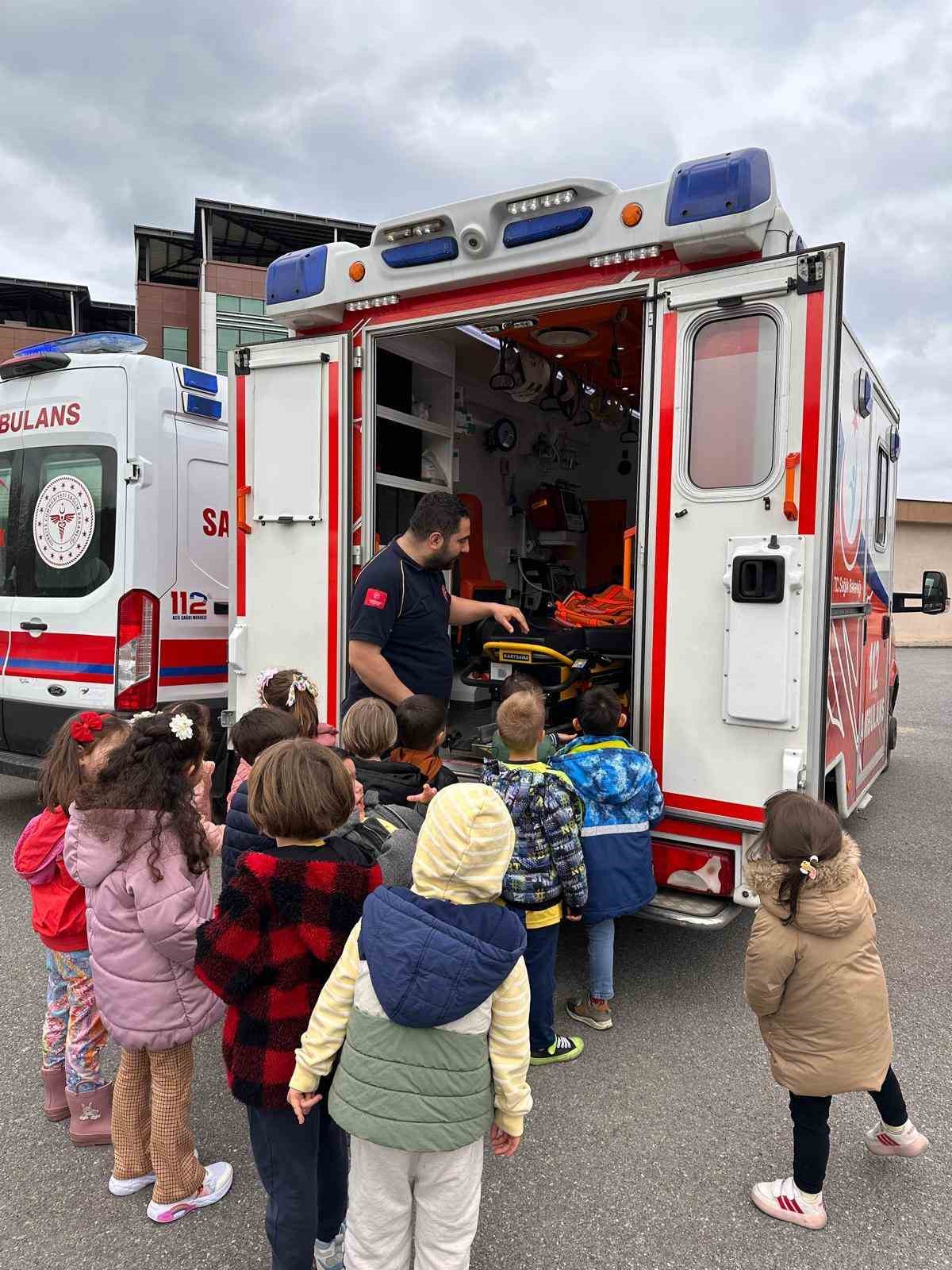 Sakarya’nın Serdivan ilçesinde 112 Acil sağlık personeli, anaokulu öğrencilerine hizmetleri hakkında bilgiler vererek ambulans tanıtımı yaptı.
