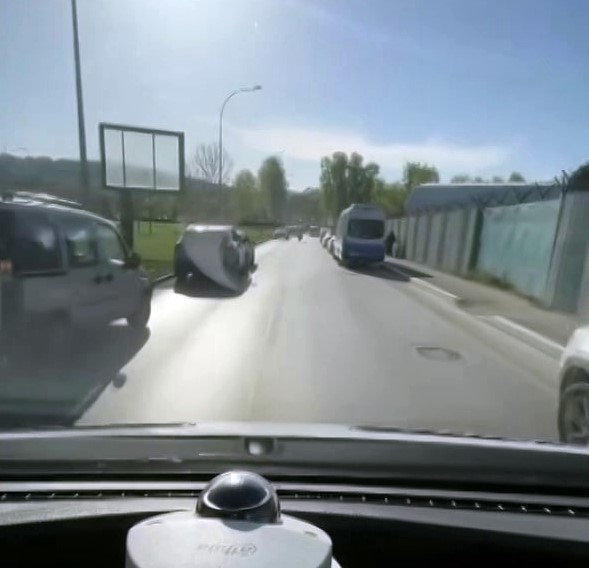 Sakarya’nın Adapazarı ilçesinde seyir halindeki ambulansın önünü fermuar yöntemi ile açan motosikletlinin örnek davranışı kameraya yansıdı.