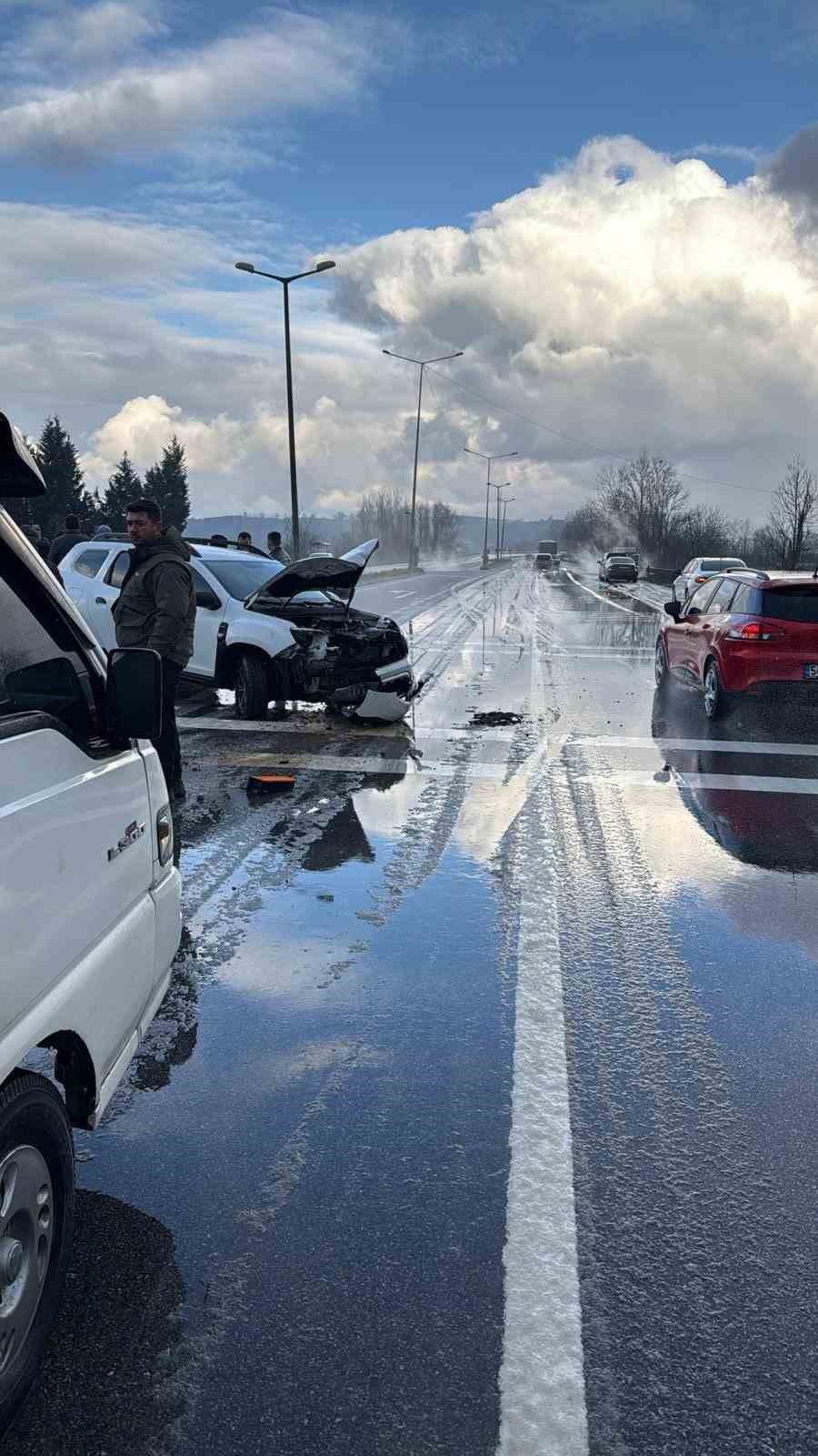 Kaza, öğle saatlerinde Karasu-Adapazarı yolu Sinanoğlu mevkisinde meydana geldi. Edinilen bilgilere göre, yağışın etkisiyle kayganlaşan yolda sürücüsünün direksiyon hakimiyetini kaybettiği otomobil, savrularak refüjdeki tabelaya çarptı. Çarpmanın etkisiyle araçta maddi hasar meydana gelirken, içerisinde 5’i çocuk toplam 8 kişinin bulunduğu otomobilde yaralanan olmadı. İhbar üzerine olay yerine sağlık ve jandarma ekipleri sevk edildi. Araçtan kendi imkanlarıyla çıkan 8 kişi, tedbir amaçlı sağlık ekiplerince kontrol edildi.