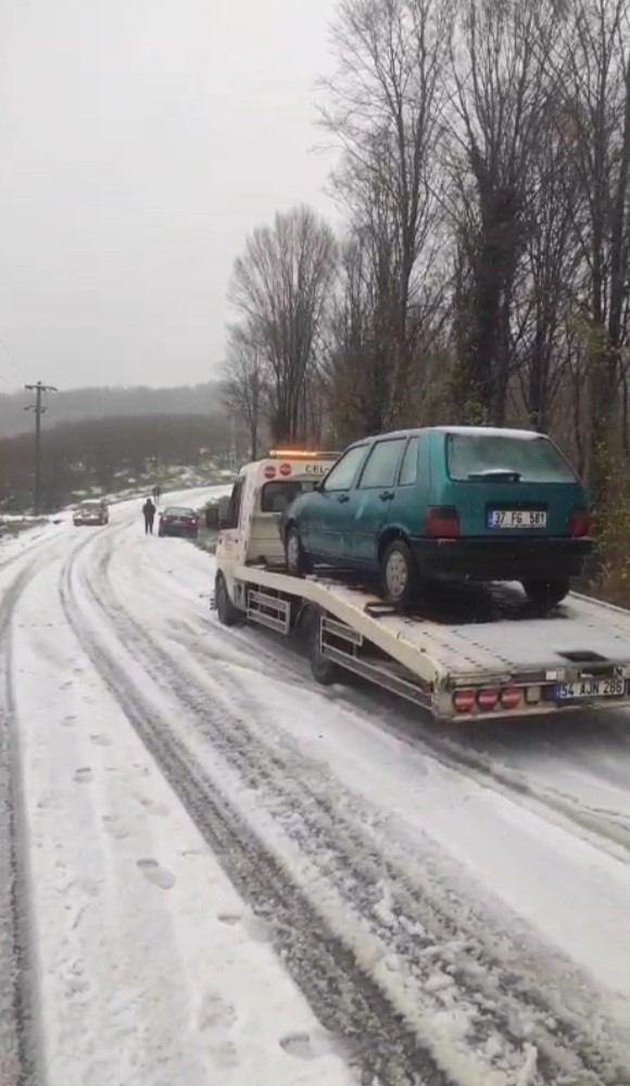 Karasu ilçesinin yüksek kesimlerinde etkili olan kar yağışı nedeniyle trafikte aksamalar yaşandı. Kar yağışına hazırlıksız yakalanan ve yolda kalan bazı sürücüler, araçlarını kurtarmak için çekici yardımı almak zorunda kaldı.