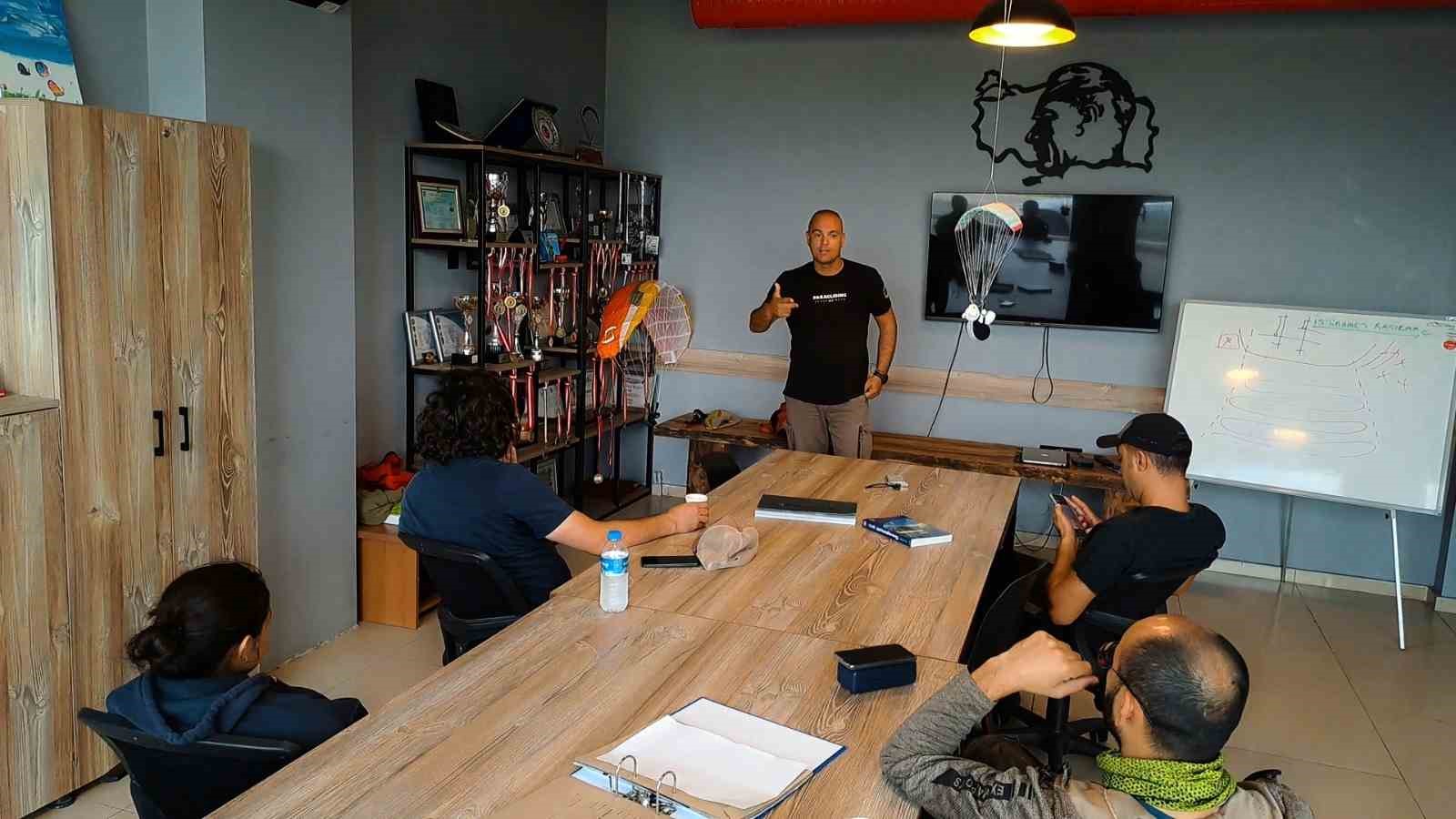 Hava Sporları Kulübü’nün kurucu eğitmeni Abdullah Yıldız, "Yamaç paraşütü gibi sportif havacılık branşında ilk eğitimimiz başlangıç eğitimi oluyor. Bu çok kısa tanıtım eğitimi dediğimiz eğitim fakat bütün altyapıyı oluşturduğumuz temelini verdiğimiz bir süreç. Yaklaşık bir hafta kadar sürüyor. Bu bir hafta içinde yaklaşık iki gün sınıfta bu ortamda ilk önce teorik bilgilerle donatıyoruz öğrenciyi. İki gün kadar arazi çalışmaları, yerde yamaç paraşütün sevk idaresi, kontrolü. Daha sonrasındaki iki günde de yamaç paraşütüyle 230 metrelik Serdivan Kırantepe mevkiinde gerçekleştirdiğimiz 7 uçuşla öğrencileri yamaç paraşütü sporu ile tanıştırıyoruz. Bu eğitimi tamamlayan öğrencinin kendi başına uçuş yapması ne yazık ki imkansız. Bizim kontrolümüzde uçuşlarına devam edebiliyorlar ama asıl yapılması gereken P3 dediğimiz orta düzey pilot eğitimini tamamlayıp kendi sorumluluğunu alabilen bir pilot olarak camiaya kazandırılması. Bu eğitim biraz daha meşakkatli. Yaklaşık 30 iş günü sürüyor. Biz bunu 40 günlük eğitim programlarıyla gerçekleştiriyoruz. Çalışanlar için de yaklaşık 3-4 ayda tamamlayabilecekleri sadece hafta sonlarından oluşan bir süreçle tamamlıyoruz. P3 eğitimin sonunda mezuniyetle ilgili yapmaları gereken bazı manevralar var. Bunlara da ‘SIV’ dediğimiz; Babadağ’da yüksek irtifadan denizin üstünde, emniyetli alanın üstünde yamaç paraşütü ile acil durumlarda yapılabilecekleri öğrettikten sonra artık kendi başlarına bu spor yapabiliyorlar" ifadelerini kullandı.