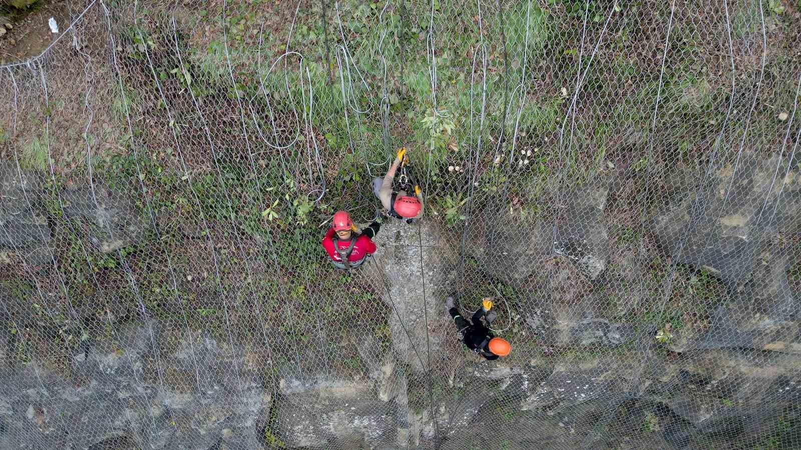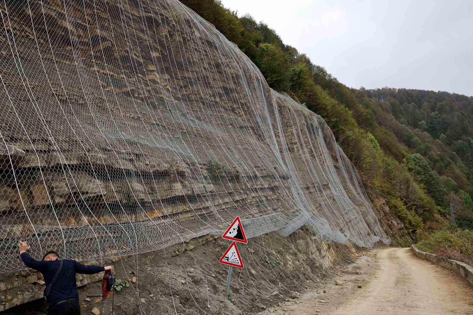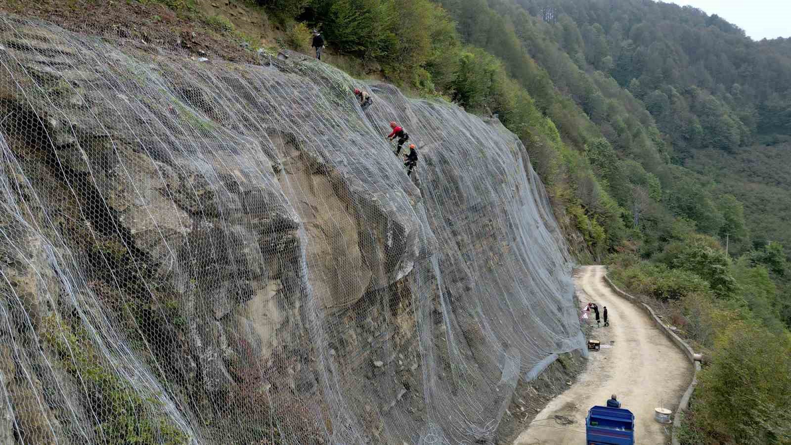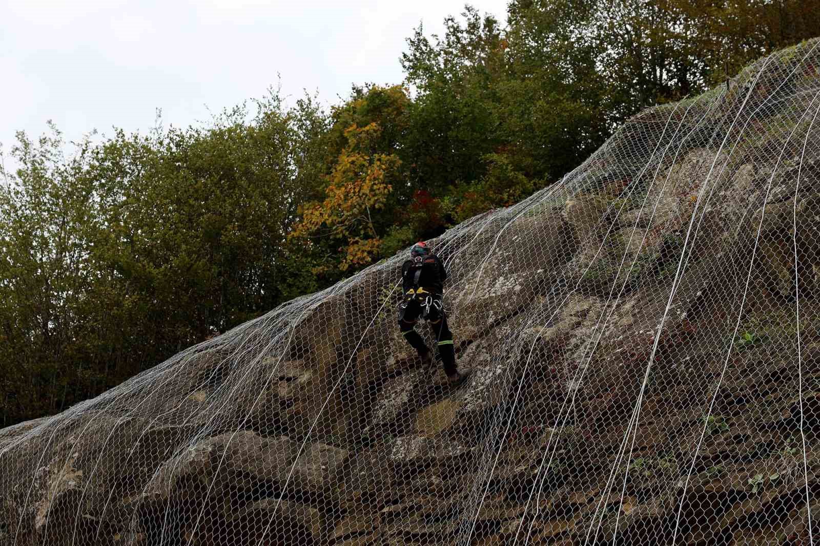 Sakarya Büyükşehir Belediyesi, şehrin dört bir yanındaki ulaşım akslarındaki tehlike arz eden noktalarda çalışmalarını sürdürüyor. Oto bariyer yanı sıra, vatandaşların rahatça ve güvenle seyahat etmeleri amacıyla gerekli görünen yerlerde çelik kafes ağları montajı yapılıyor. Kocaali kırsalında Yanıksayvant Mahallesi’ndeki Uluçukur mevkiinde 45 yıllık sorun, Büyükşehir ve Kocaali Belediyesi iş birliğiyle ortadan kalktı. Kocaali Belediyesi ekipleri, tehlike arz eden zorlu arazi geçişlerinde önce kapsamlı bir temizlik yaptı. 3 bin metrekarelik alanda Afet İşleri Dairesi ekiplerince toprak kayması riski bulunan noktaların tamamına çelik kafes ağları montajlandı. Bu sayede bölgede araçların ve yayaların üzerine taş ile kayaların savrulmasını önleyecek. Yol Bakım ve Altyapı Koordinasyon Dairesi (YOLBAK) ekipleri ise çalışmanın tamamlanmasından sonra bu hattı sıcak asfaltla buluşturacak.