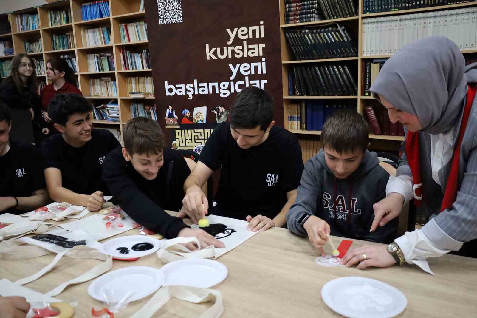 Sakarya Büyükşehir Belediyesi, Cumhuriyet’in 102. yılını Sakarya Anadolu Lisesi’nde SAMEK eğitmenleriyle muhteşem bir etkinlikle kutladı. Öğrenciler Atatürk portresi ve imzalı bez çantalar tasarlayıp ay-yıldızlı kitap ayraçları hazırladı. SAMEK mutfağından ikram edilen ay yıldızlı kurabiyelerle ise kutlama renklendi.