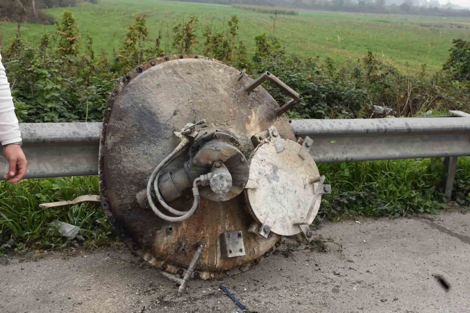 Sakarya’nın Hendek ilçesi D-100 kara yolunda kamyonun dorsesinde bulunan şerit çizme makinesi üzerinde bulunan kazanının patlaması neticesinde 2 işçi yaralandı.