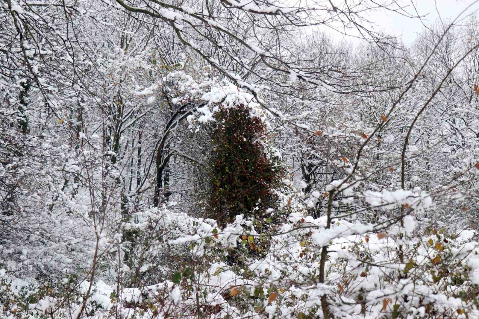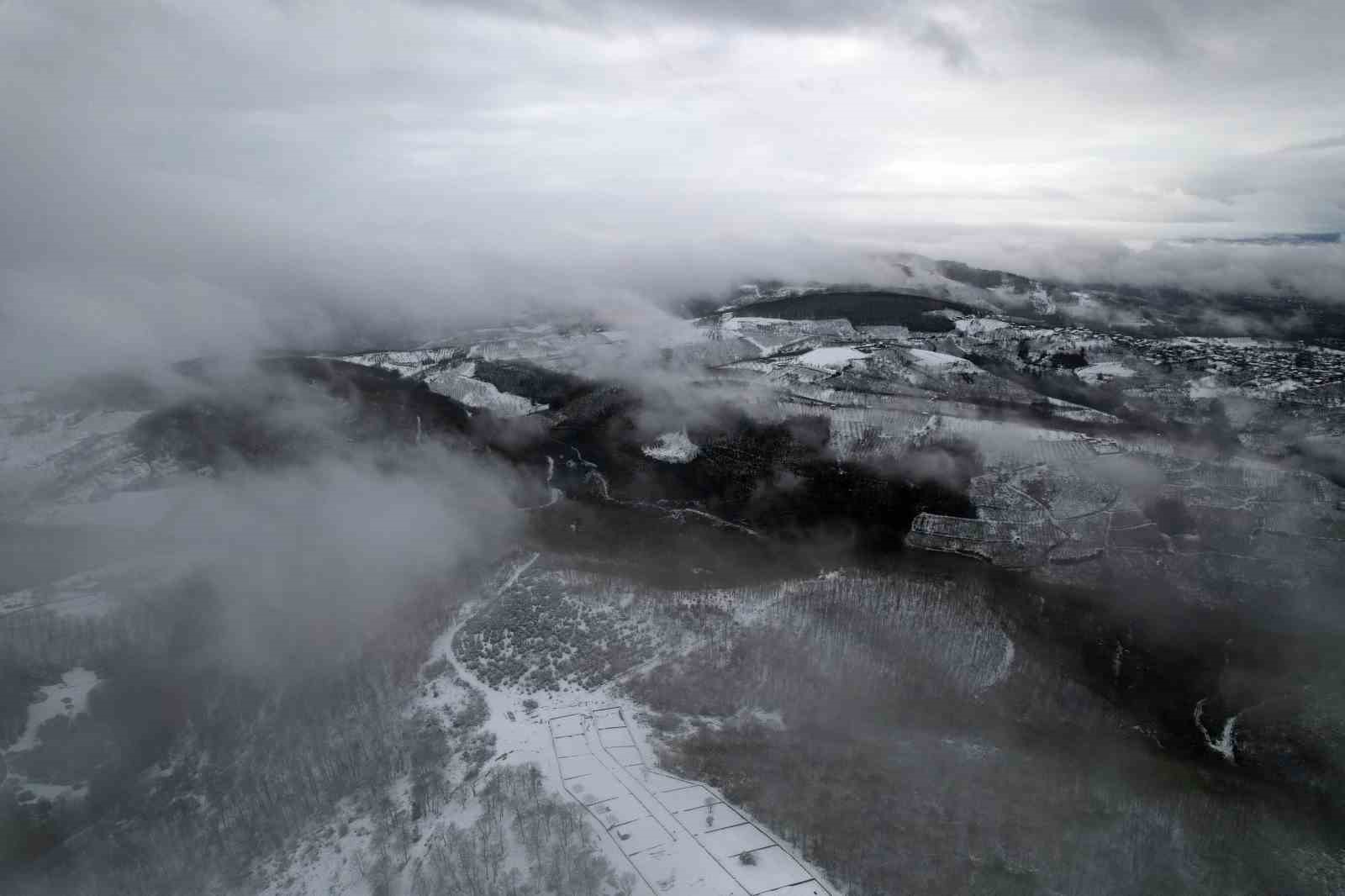 Meteoroloji Genel Müdürlüğü’nün uyarılarının ardından Sakarya’da etkili olan kar yağışıyla birlikte yüksek kesimlerde oluşan görüntü kendine hayran bıraktı.