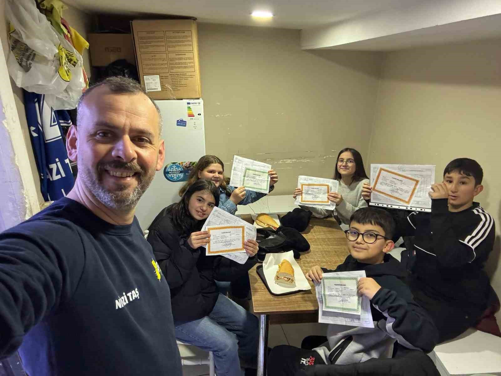 Sakarya’nın Pamukova ilçesinde bir işletmeci, eğitim öğretim yılının ilk döneminin tamamlanmasıyla takdir ve teşekkür belgesi alan öğrencilere bedava tavuk döner ikram etti.