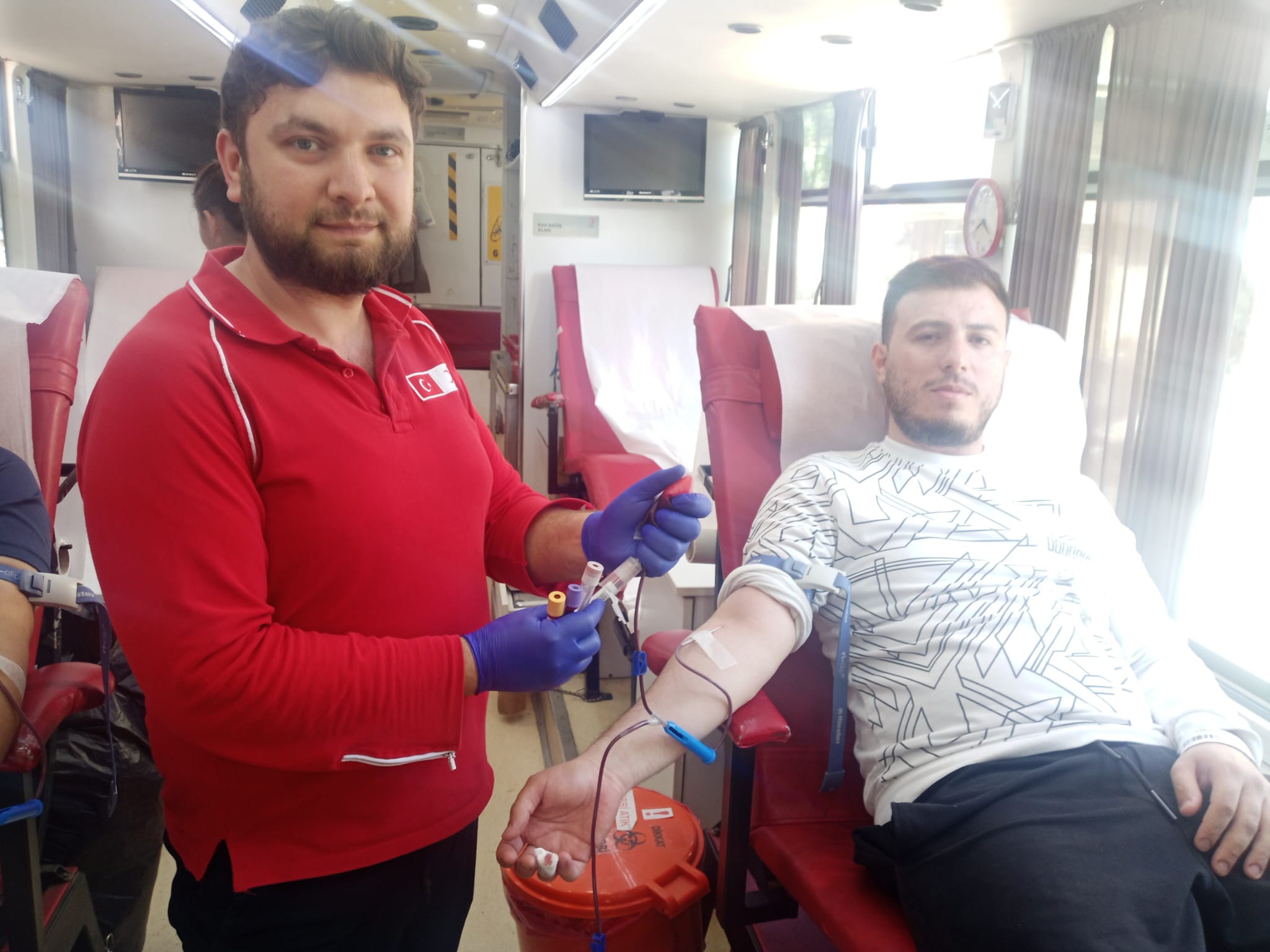üzere vatandaşların kan bağışında bulunduğu etkinlik bayram havasında