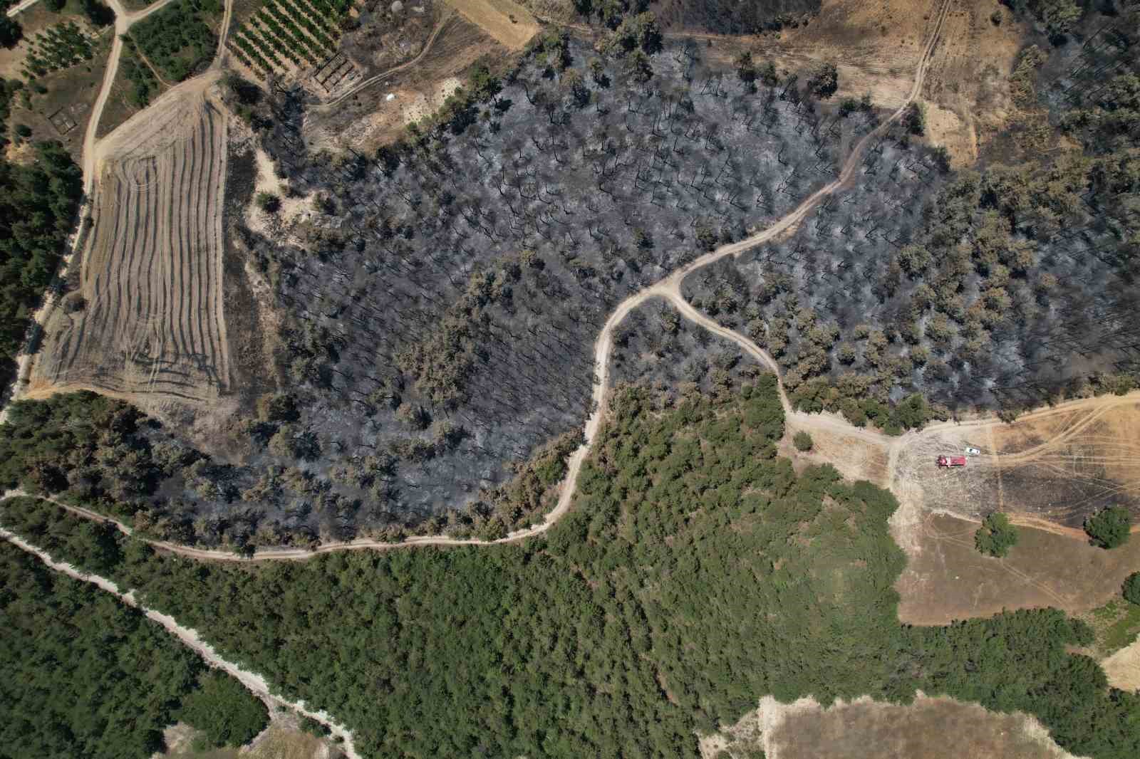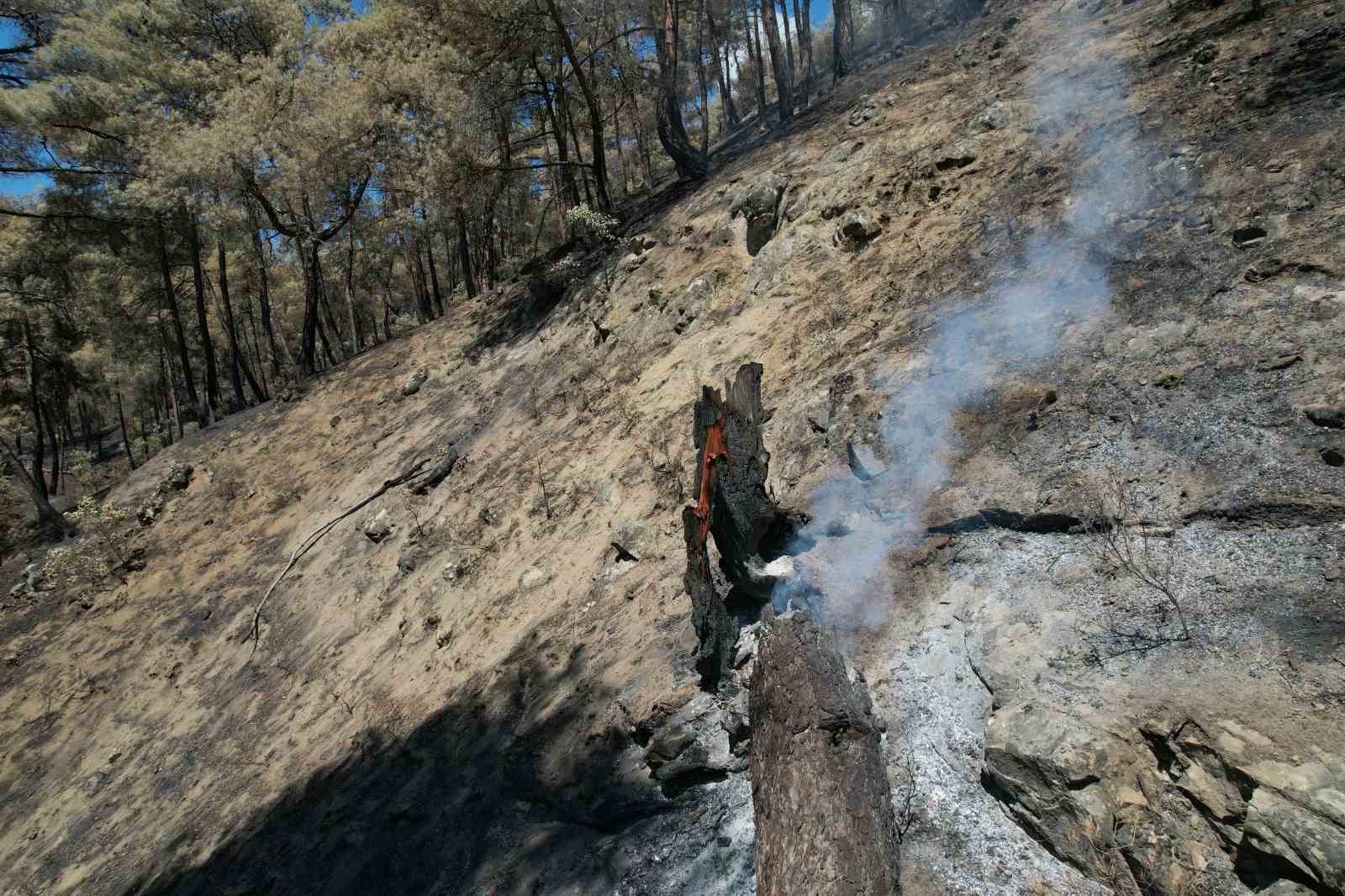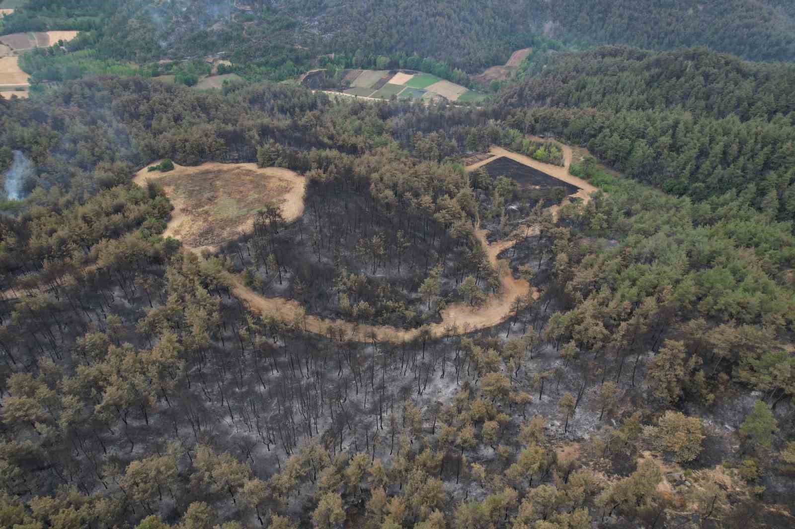 Yüzlerce hektarlık alanı küle çeviren yangının izleri, uydudan çekilen görüntülerle de gözler önüne serildi. Yangından etkilenen tahmini alanların afet haritasındaki izleri, yangının yıkıcı boyutunu net bir şekilde ortaya koydu. Beşinci gününe giren yangında, orman ekosisteminin büyük yara aldığı görüldü. Bölgede hem tarım alanları hem de yaban hayatı zarar gördü. 5’inci gün itibarıyla bölgede soğutma çalışmaları sürerken, yanan alanlarda tahribat netleşmeye başladı. Yangının küle çevirdiği alanlar dron ile havadan da görüntülendi.