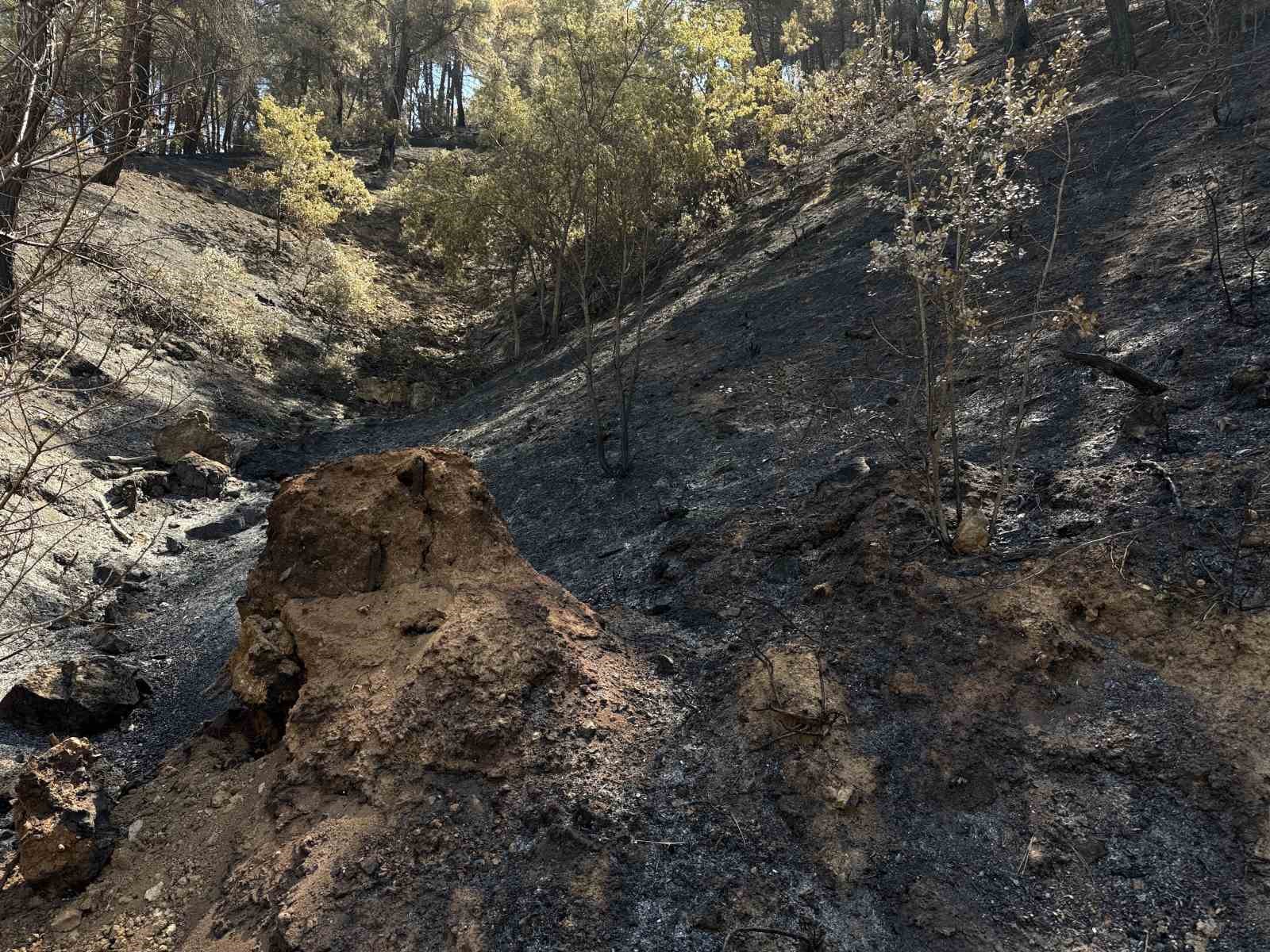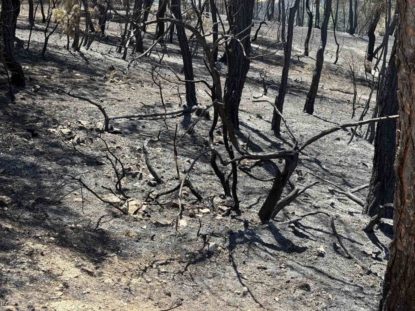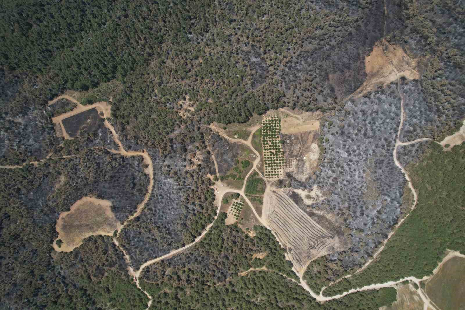 Yüzlerce hektarlık alanı küle çeviren yangının izleri, uydudan çekilen görüntülerle de gözler önüne serildi. Yangından etkilenen tahmini alanların afet haritasındaki izleri, yangının yıkıcı boyutunu net bir şekilde ortaya koydu. Beşinci gününe giren yangında, orman ekosisteminin büyük yara aldığı görüldü. Bölgede hem tarım alanları hem de yaban hayatı zarar gördü. 5’inci gün itibarıyla bölgede soğutma çalışmaları sürerken, yanan alanlarda tahribat netleşmeye başladı. Yangının küle çevirdiği alanlar dron ile havadan da görüntülendi.