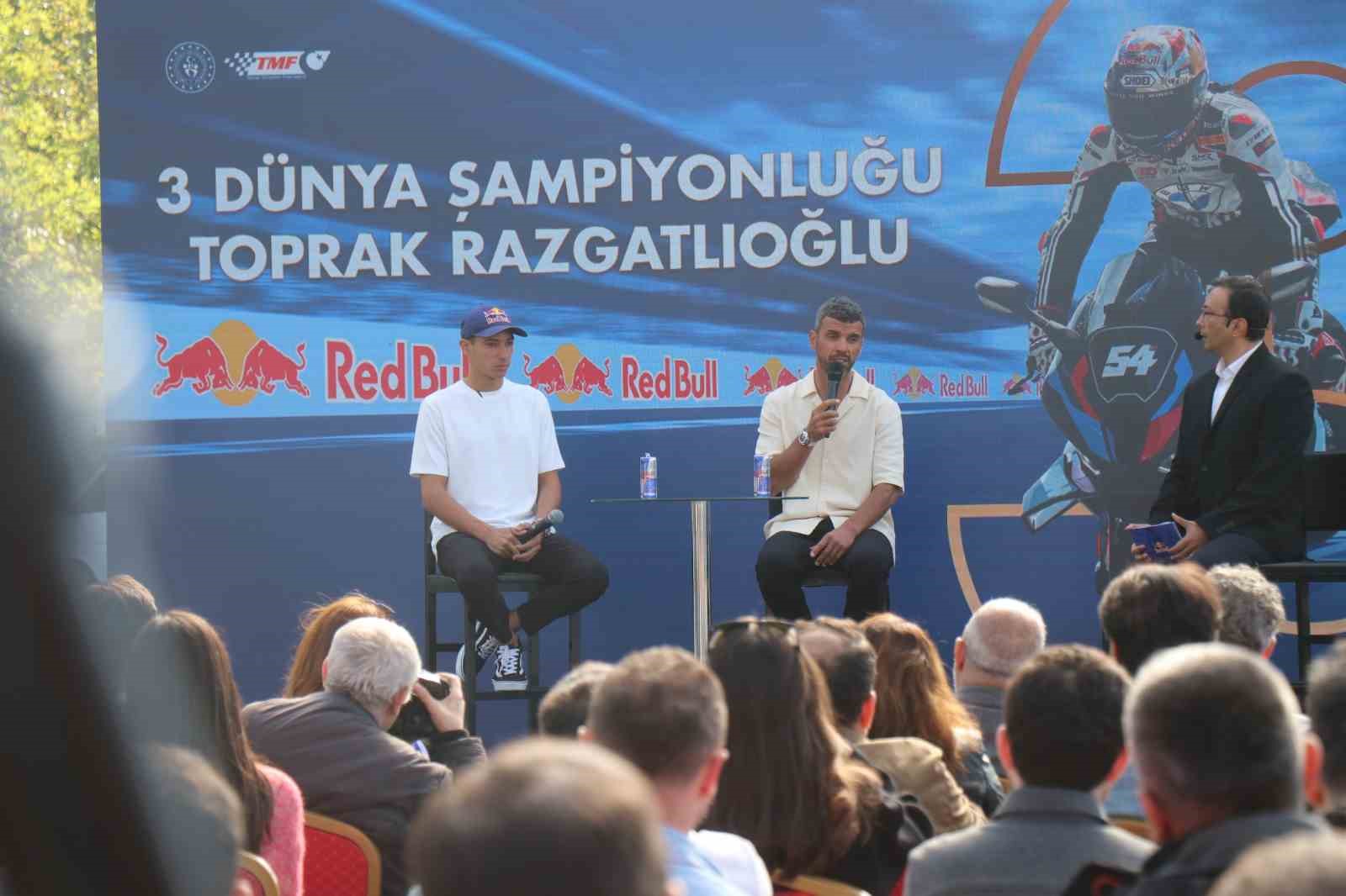 Dünya Superbike Şampiyonası’nda genel klasmanda lider durumda bulunan Red Bull sporcusu Toprak Razgatlıoğlu, organizasyonun son etabı olan İspanya’da şampiyonluğunu ilan etti. 3. Dünya şampiyonluğunu kazanan Toprak, Sakarya’nın Akyazı ilçesinde bulunan yarış pistinde Milli Takımlar Kaptanı Kenan Sofuoğlu ile birlikte açıklamalarda bulundu. Sezona iyi başlangıç yapamadıklarını söyleyerek sözlerine başlayan Razgatlıoğlu, "Motosiklet çok iyi değildi ve motosiklete odaklandık. Ne zaman işimize odaklandık her şey bambaşka olmaya başladı. Yarış kazanmaya başladık çünkü motosikleti geliştirdik, inanmaya başladık ve daha sonrasında 13 yarış üst üste kazanmaya başladık. 14 olmadı rekor kırmaya çalıştık ama olmadı. Herkes bizi izlerken motosikletin üstünde tek başımayım, arkamda gerçekten büyük bir aile var. Herkesin en iyi şekilde motosikleti hazırlaması gerekiyor, ufacık bir cıvata bile her şeyi berbat edebilir takıma da çok teşekkür ederim. Dünya Şampiyonu oldum diyemiyorum, Dünya Şampiyonuyuz diyorum" cümlelerine yer verdi.