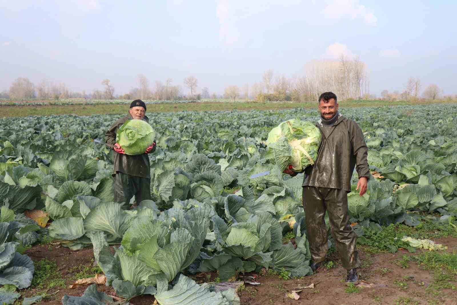 Turşuların başrol oyuncusu lahananın hasadına devam ediliyor