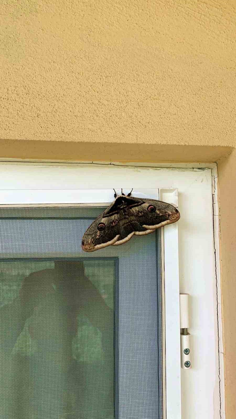Kelebeği görerek hayrete düşen ve cep telefonu ile kayıt eden Ersin Yalçın, "İki gündür evimizin penceresinde duruyor bu kelebek. Ve internette araştırdığımız zaman bu türün ‘tavus kelebeği’ olduğunu gördük. Kelebeğin kanat açıklığı 15-16 santimetreye kadar ulaşıyor. Çok güzel desenleri var. Üzerinde baykuş gözüne benzeyen ve dalgalı desenler var. Güzel ve nadir bir kelebek, ilk defa böyle bir şeye rastladığımız için şaşırdık" dedi.