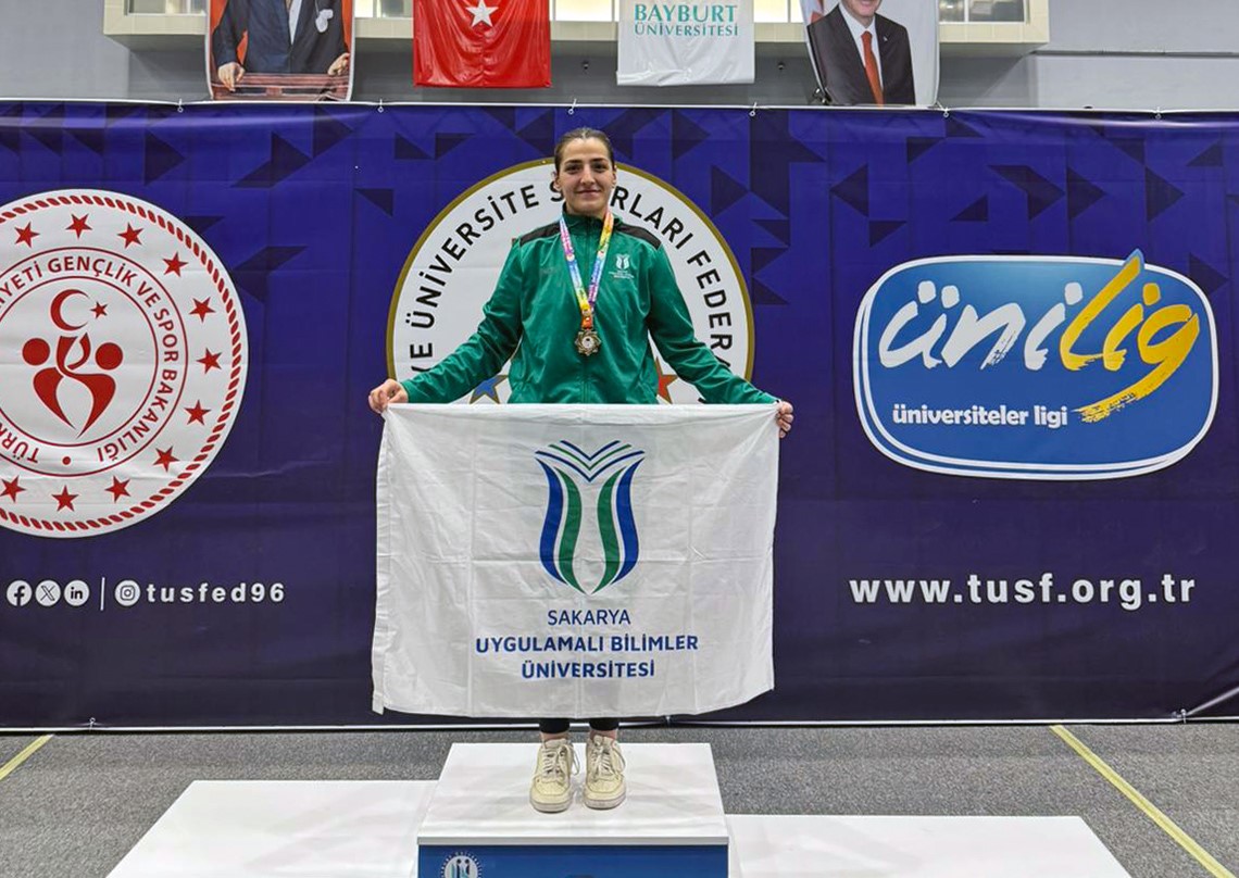 Sakarya Uygulamalı Bilimler Üniversitesi (SUBÜ) öğrencisi Ece Asude Ediz, Türkiye Üniversite Sporları Federasyonu (TÜSF) tarafından düzenlenen Üniversiteler Arası Boks Türkiye Şampiyonası’nda mücadele etti. Bayburt Üniversitesi ev sahipliğinde düzenlenen şampiyonada Ediz, 57 Kilo Kategorisi’nde Türkiye birincisi olarak altın madalyanın sahibi oldu. 48 üniversiteden 206 sporcunun katıldığı şampiyonada dereceye giren sporculara ödülleri TÜSF Başkanı ve Bayburt Üniversitesi Rektörü Prof. Dr. Mutlu Türkmen tarafından takdim edildi.